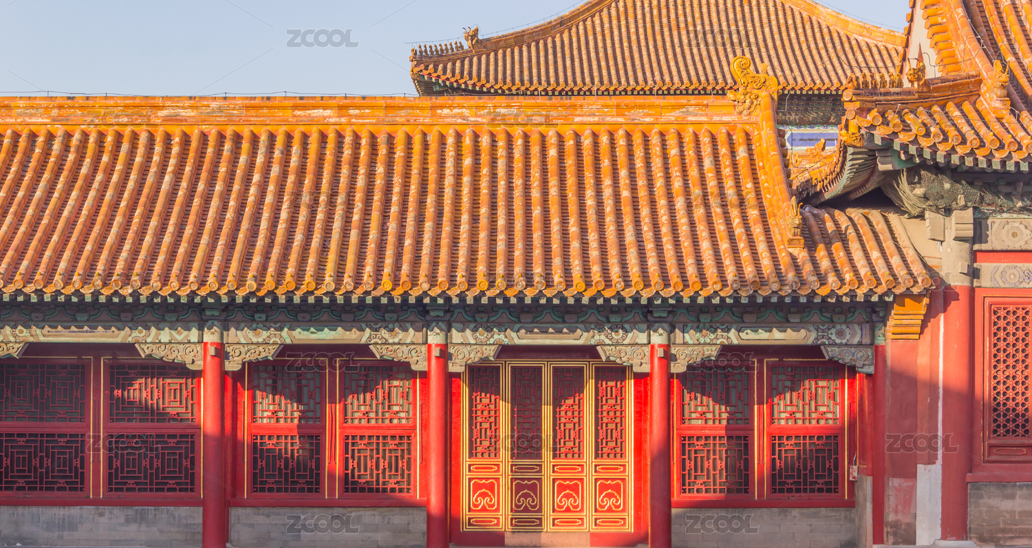 蓝天下的中国北京故宫博物馆的古宫殿建筑