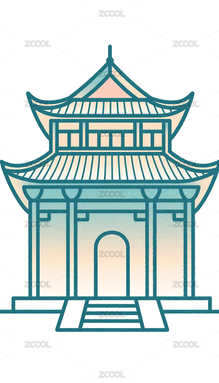 国潮风格古建筑插画素材