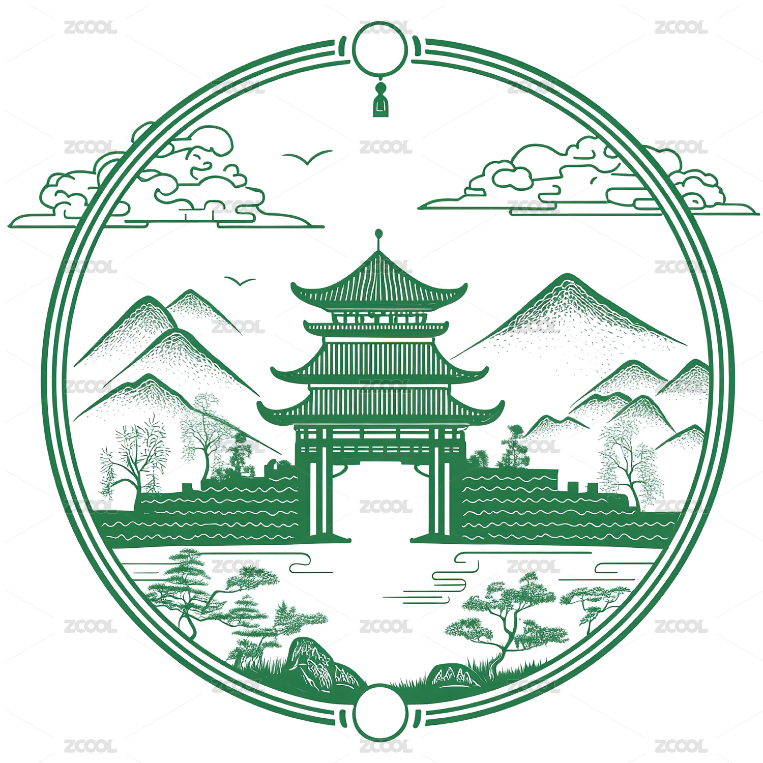 苏州园林洞窗插画
