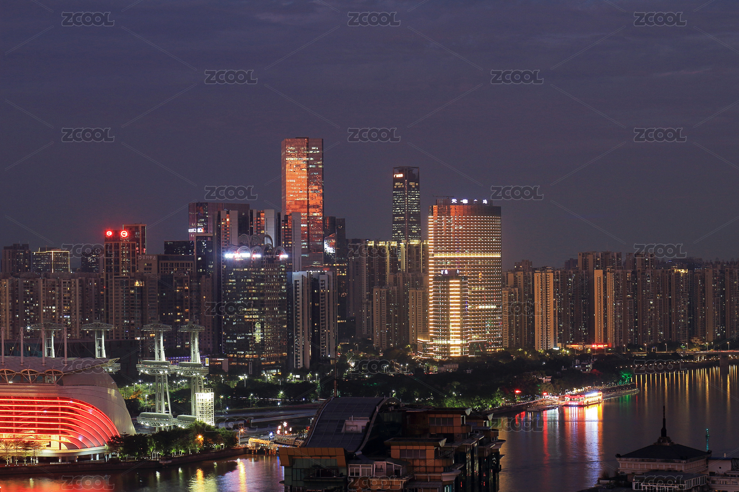 杭州,城市,夜景,钱塘江,城市阳台,奥体中心,江景,高楼,写字楼,灯光