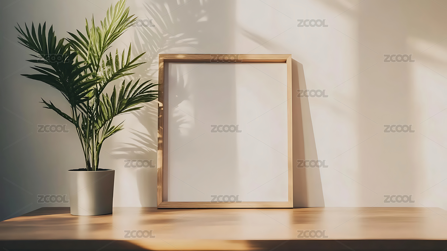 纯色,背景,书桌,简约,台灯,相框,绿植,办公,布景,特写