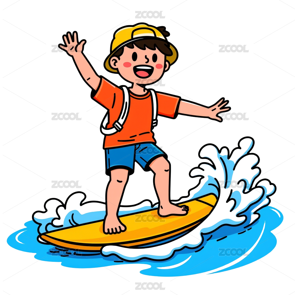 旅游,帽子,浪花,蓝天,扁平,度假,插画,海浪,蓝色,游玩