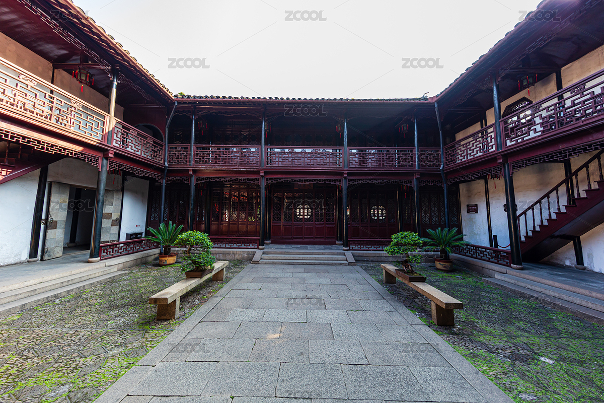 中国安徽黄山唐模古镇里的大宅庭院风光
