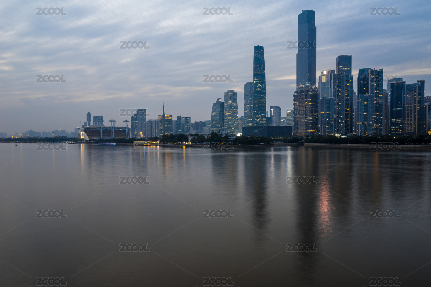 广州珠江两岸广州塔东塔西塔建筑群天际线