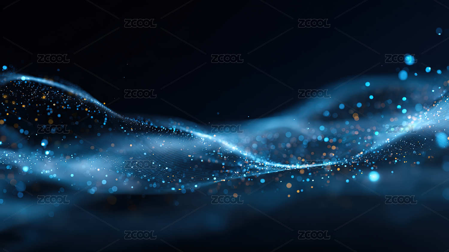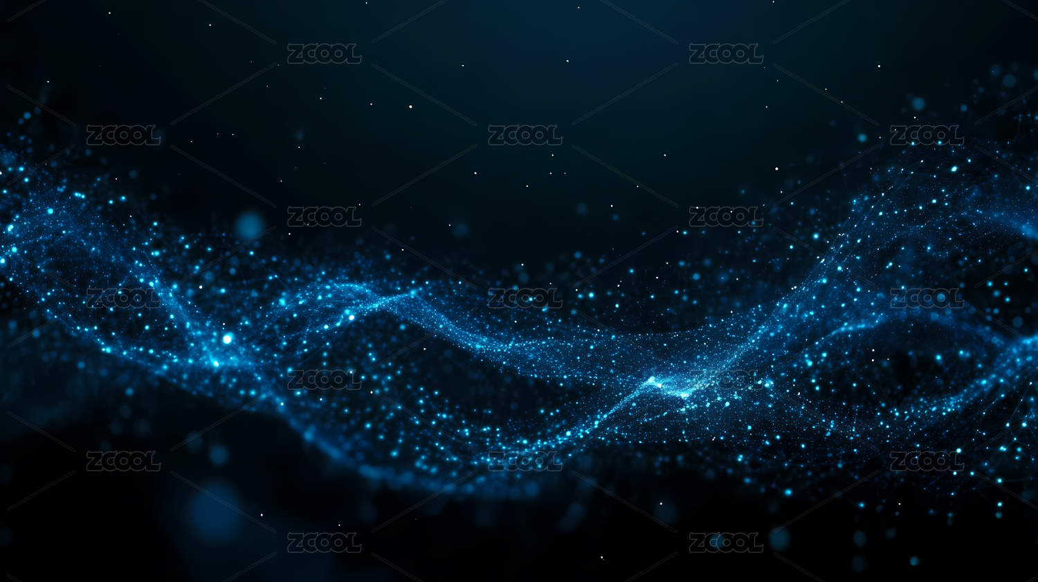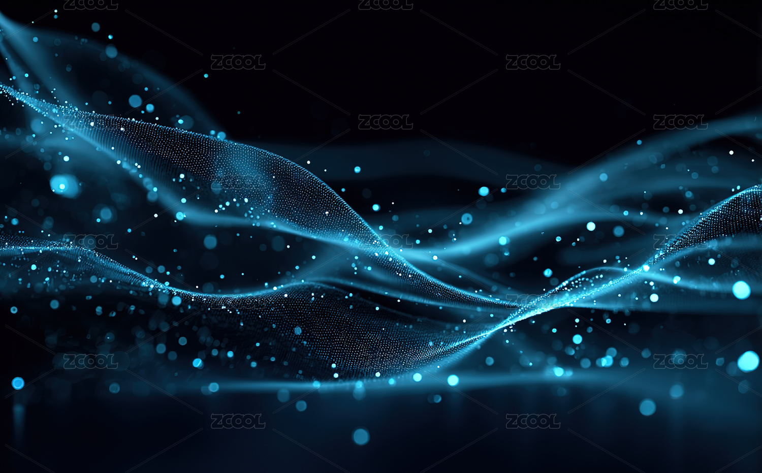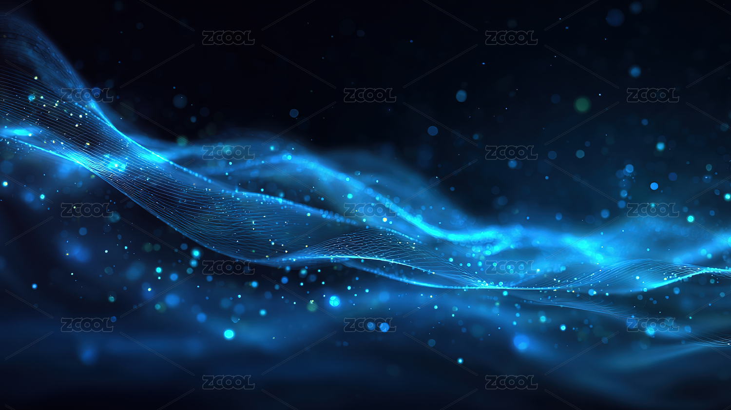 蓝色发光能量粒子和线条的明亮波抽象背景
