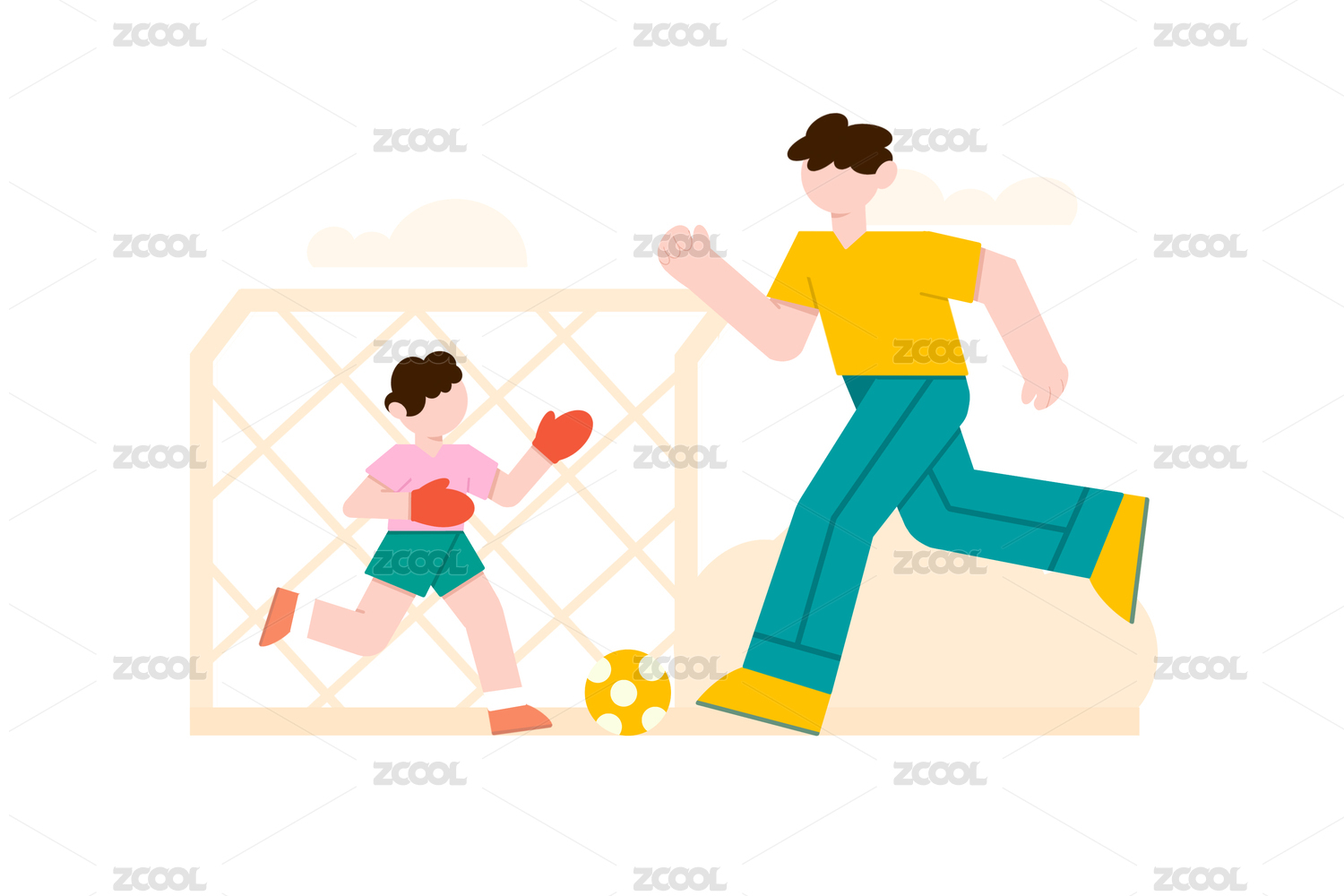 踢足球的父子插画