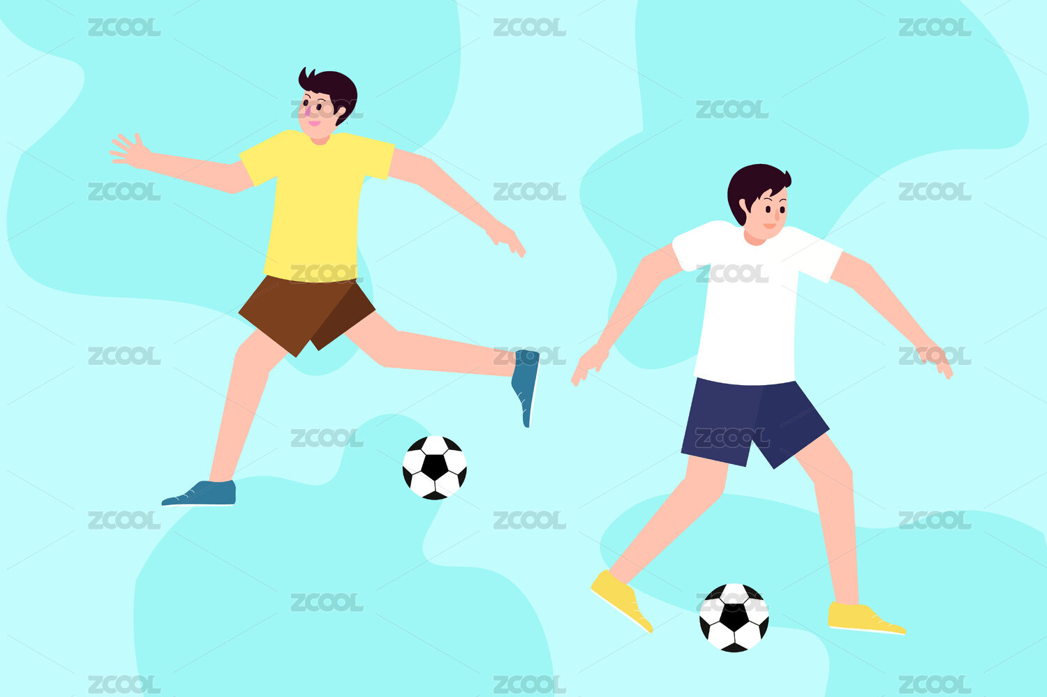 两个男生在踢球卡通插画