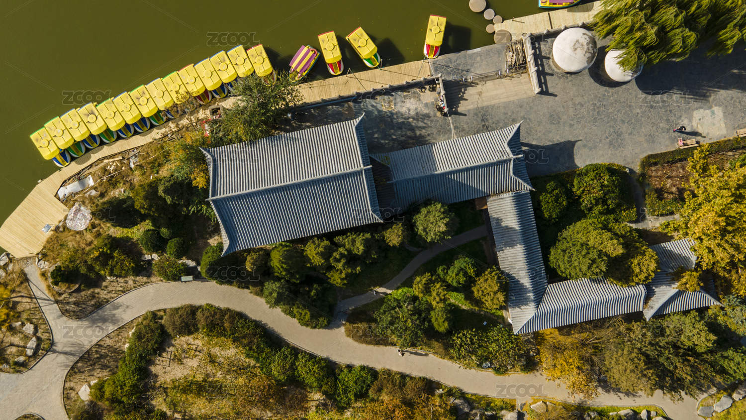天津滨海新区河滨公园俯瞰视角