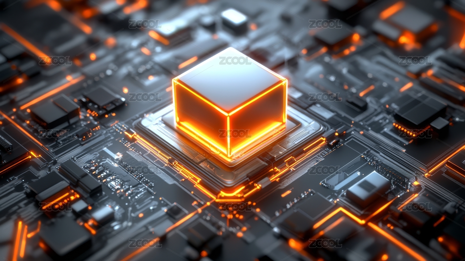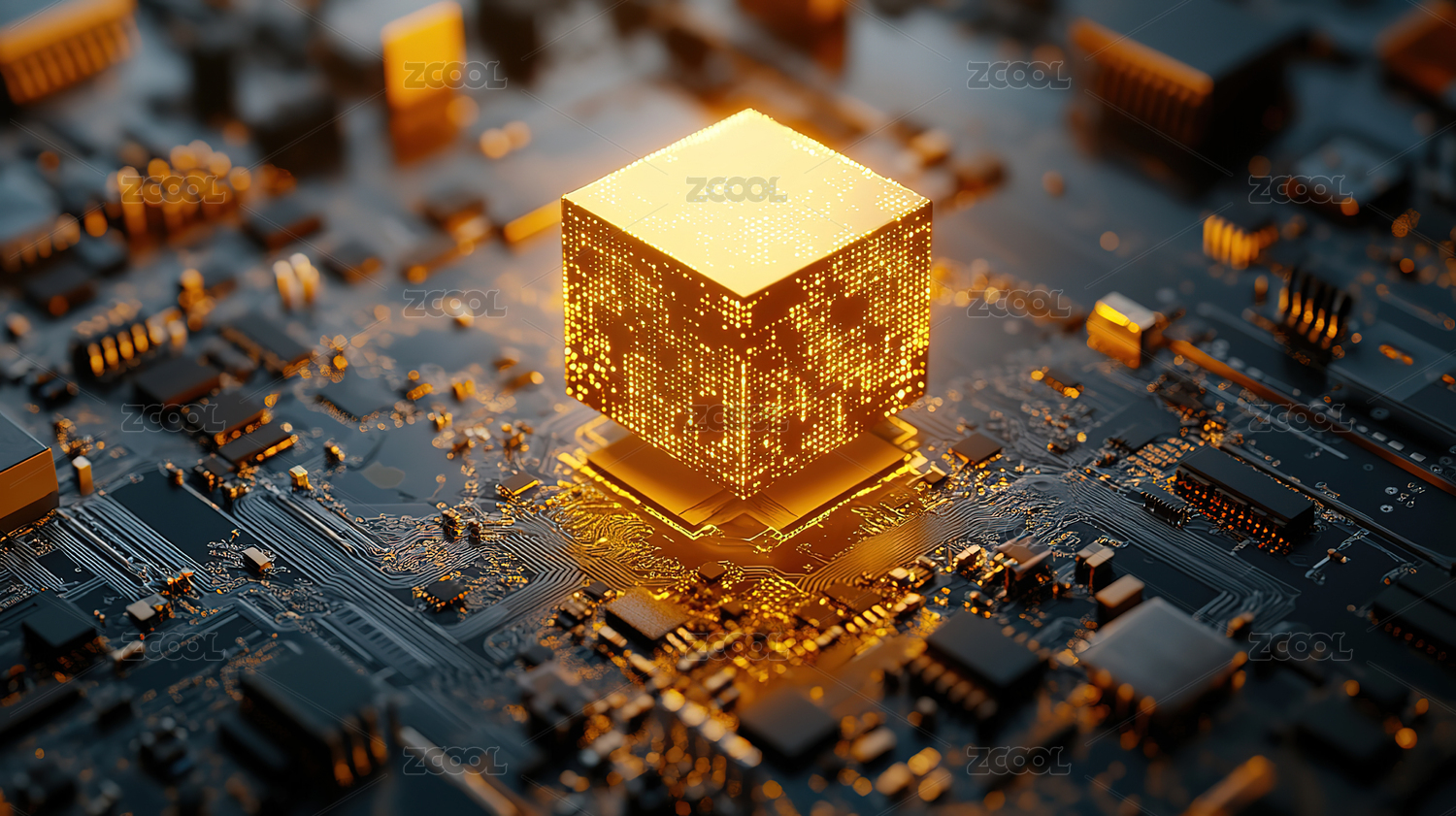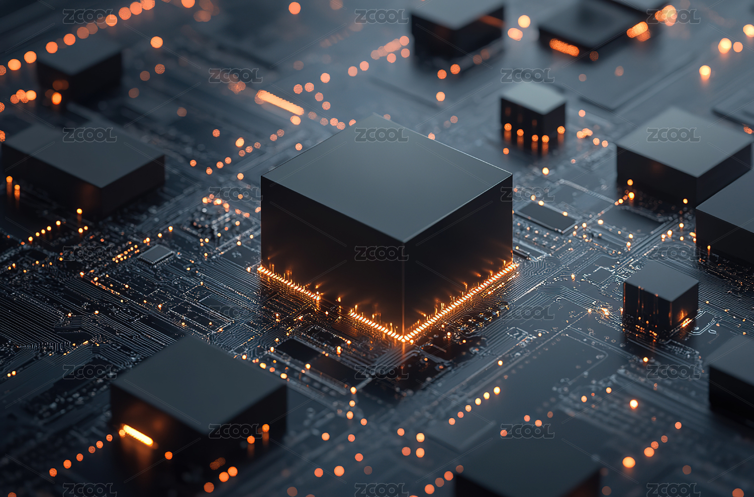 未来科技电路中的黑色立方体