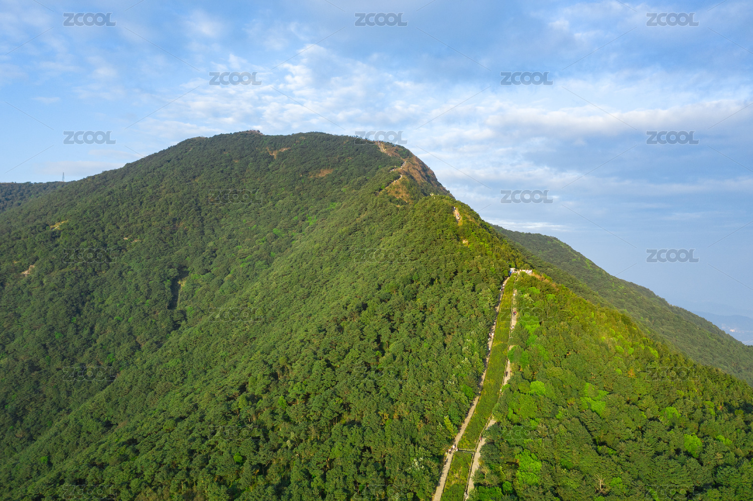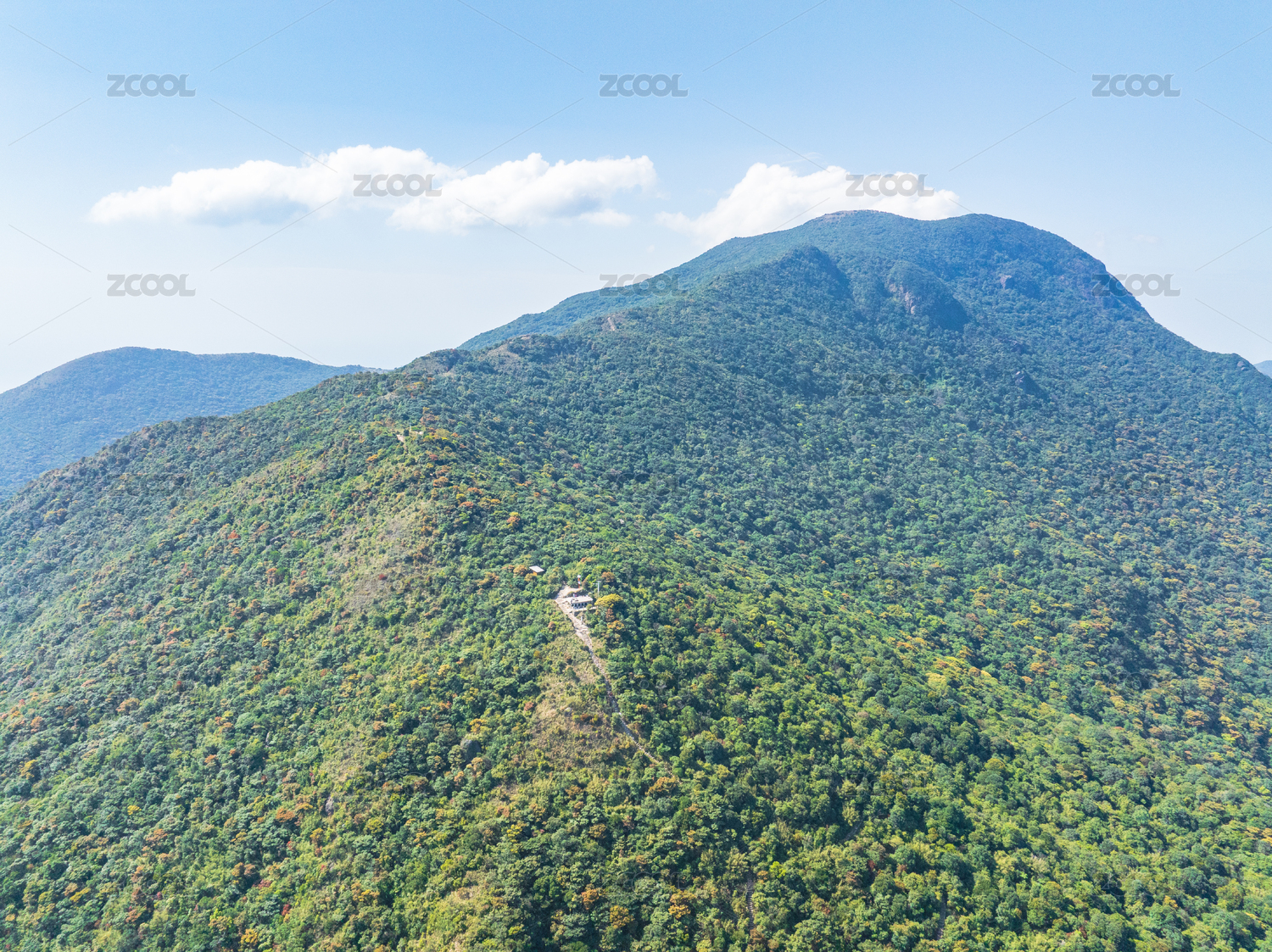 中国深圳,蓝天白云下的梧桐山脉