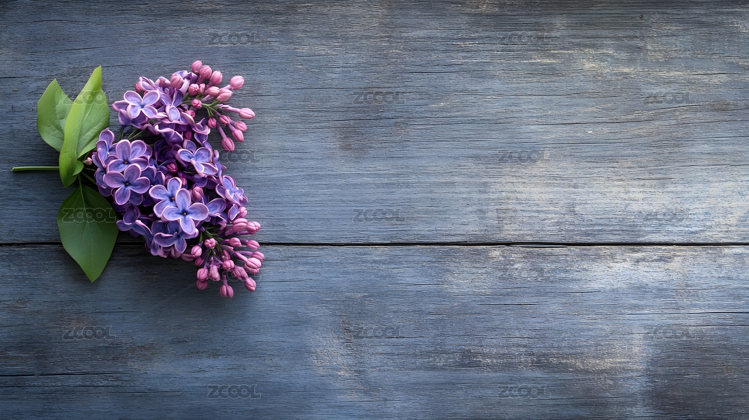 复古木桌上的一排丁香花背景