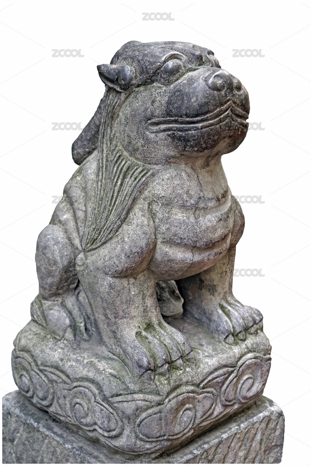 中国古镇老宅门口的石雕石头狮子特写