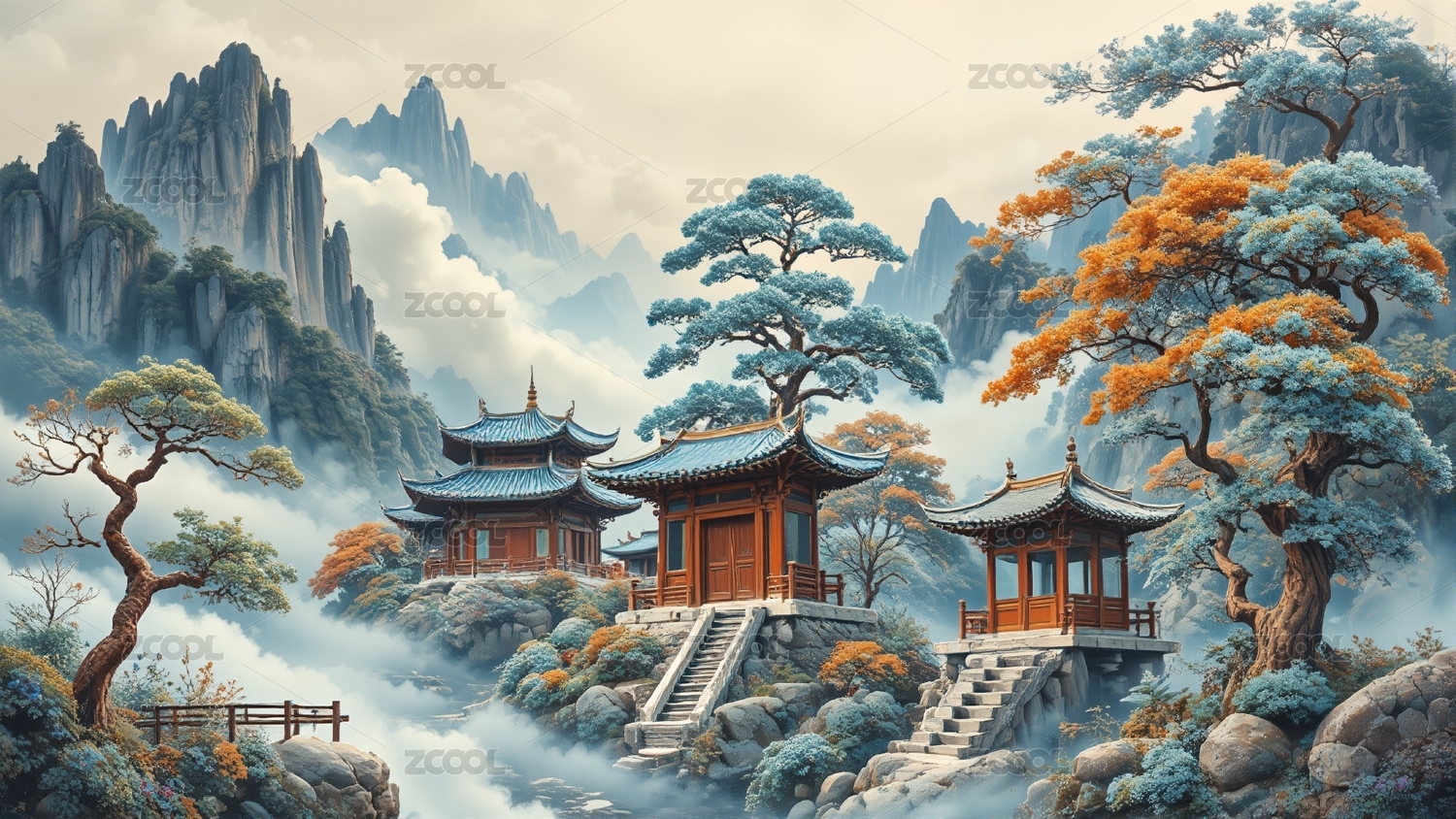 重阳节,户外,秋天,AIGC202406,插画,远山,山顶,背影,重阳,菊花