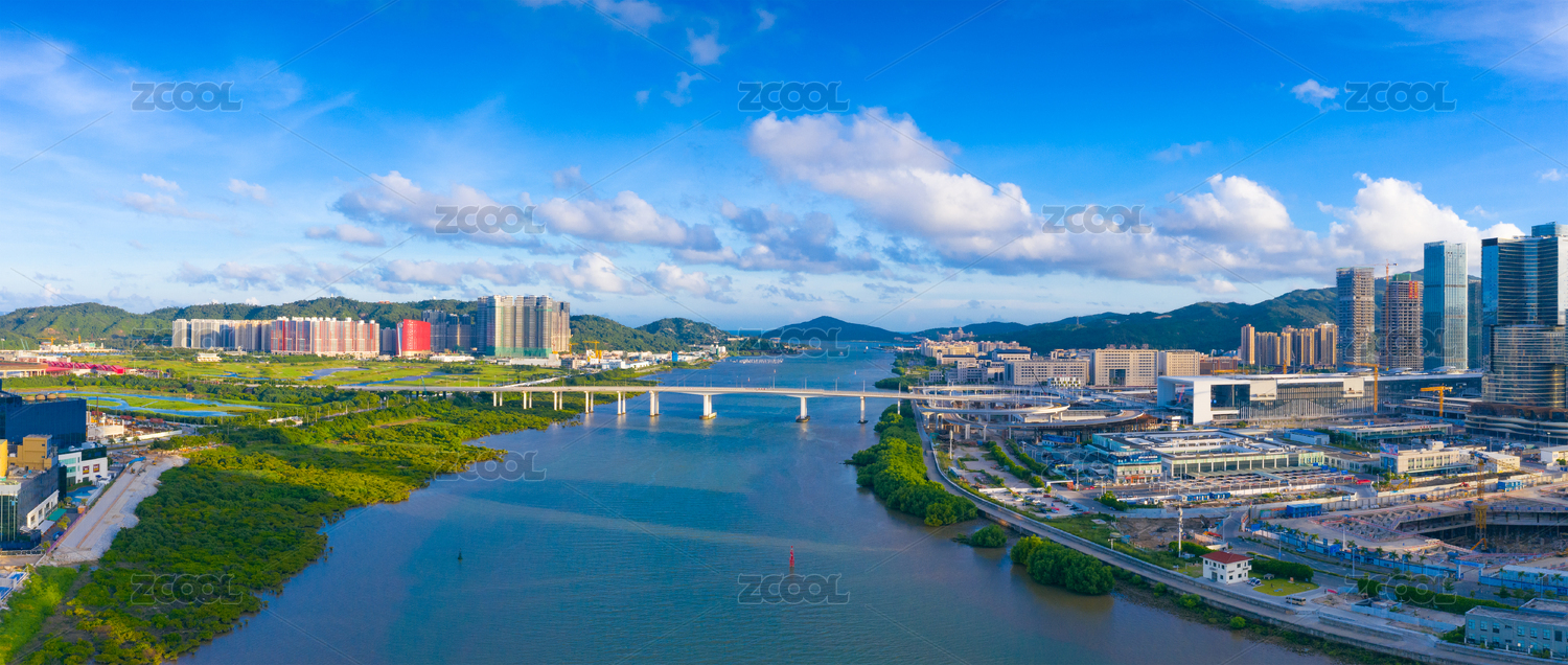 大湾区珠海横琴澳门城市风光航拍