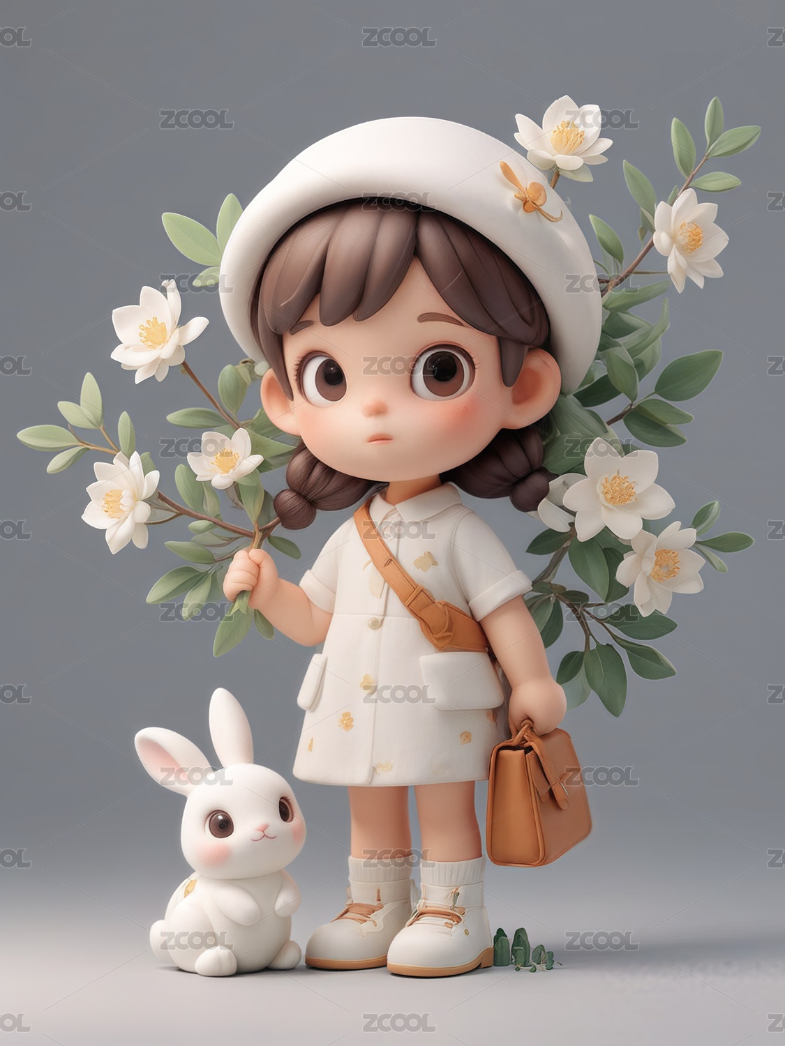 3D渲染可爱卡通女孩三八妇女节人物插画