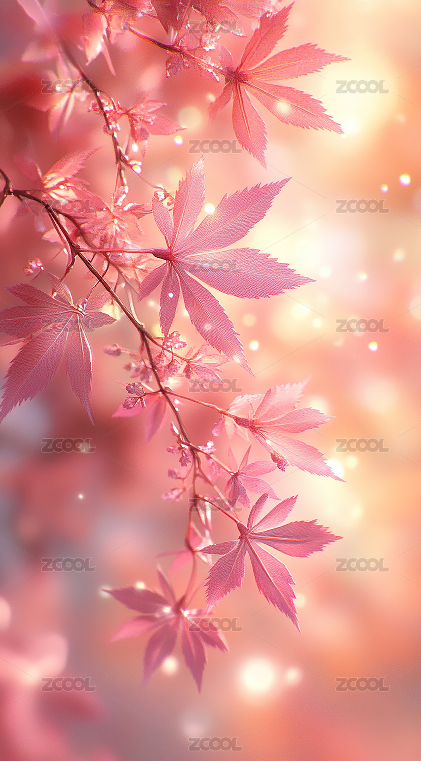 朦胧,背景,唯美,粉色,叶片,梦幻,光晕,植物,清新,光线