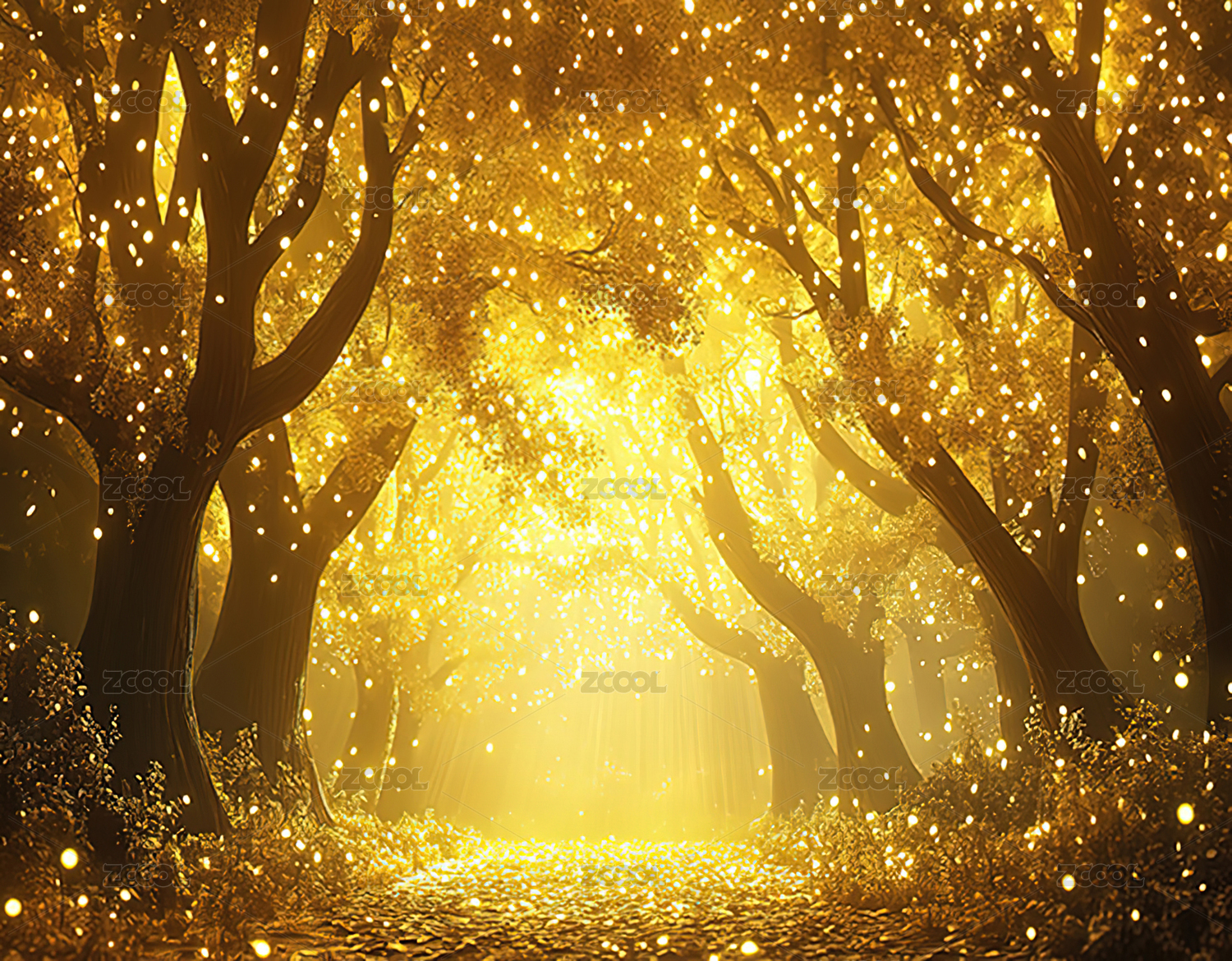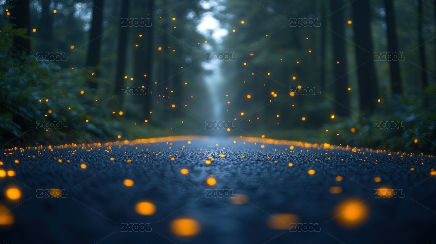 3D,山峰,萤火,森林,光,梦幻,奇幻,AI,数字艺术,壁纸