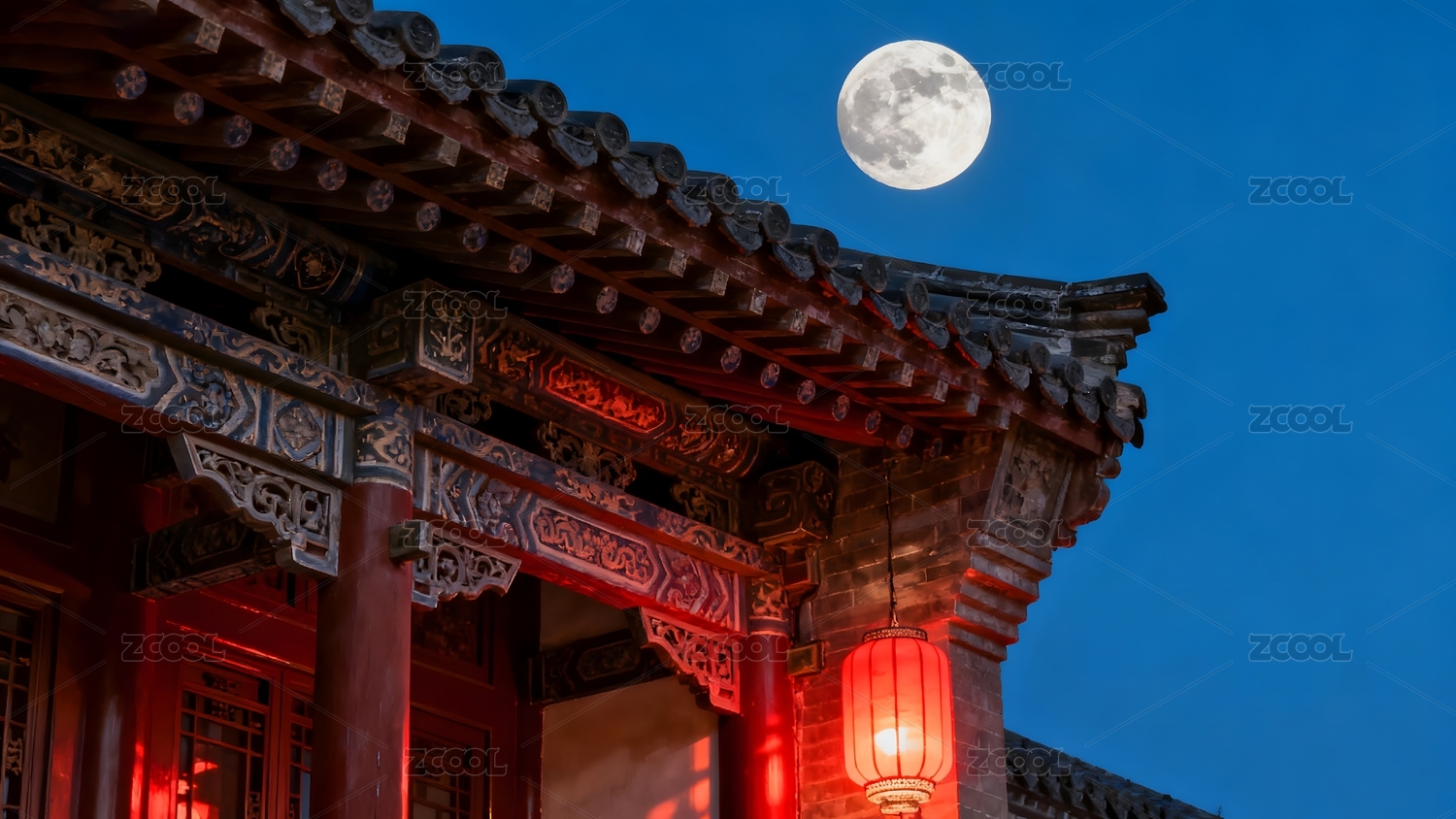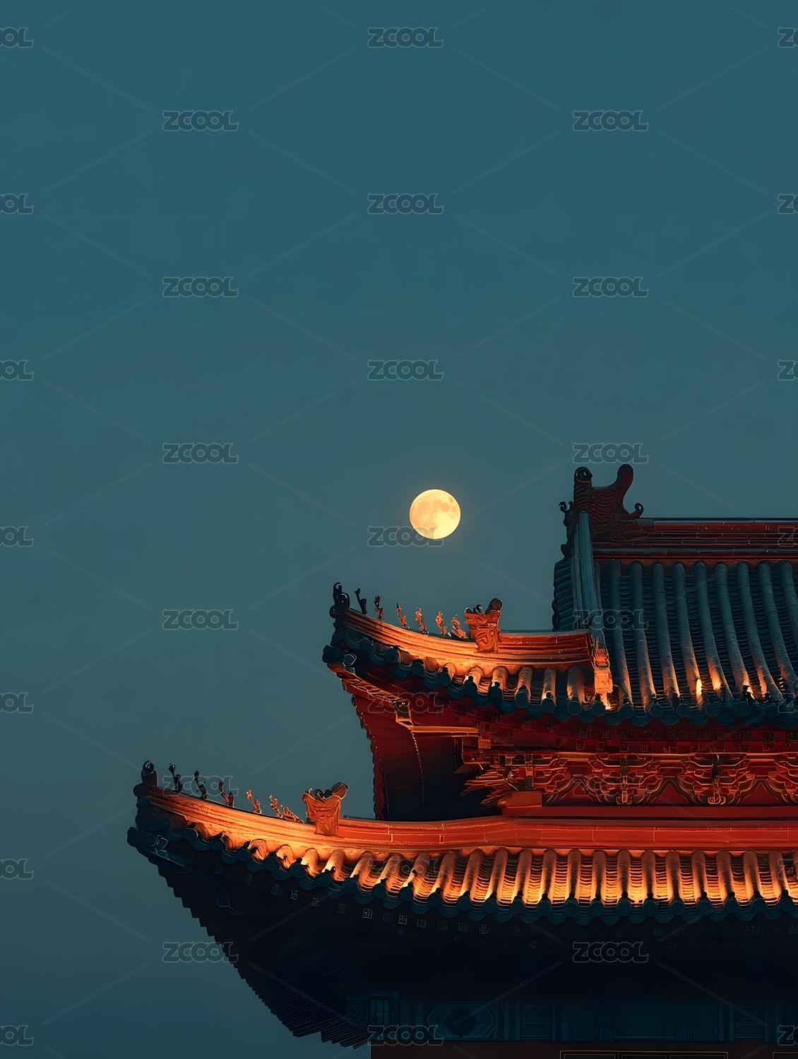 夜景,建筑,氛围,古建筑,夜色,中国风,月亮,传统,屋檐,皓月