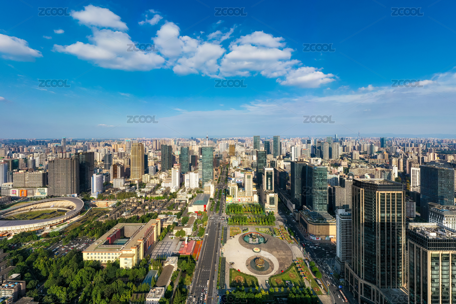 四川省成都市天府广场全景航拍图