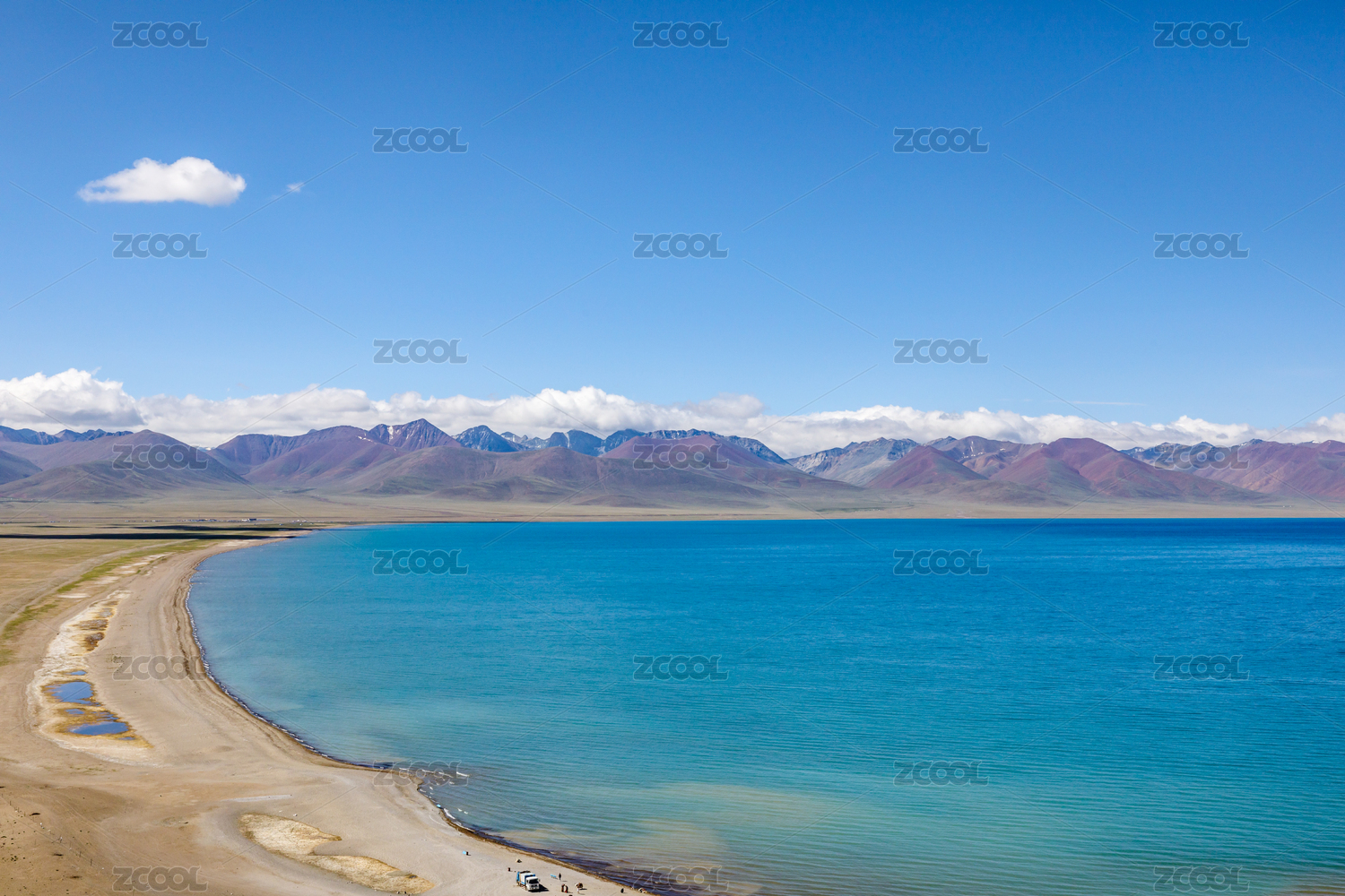 蓝天白云下的中国西藏高原湖泊玛旁雍错