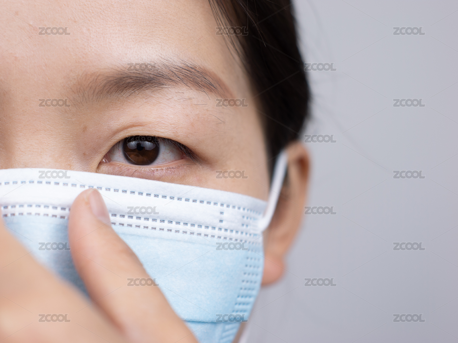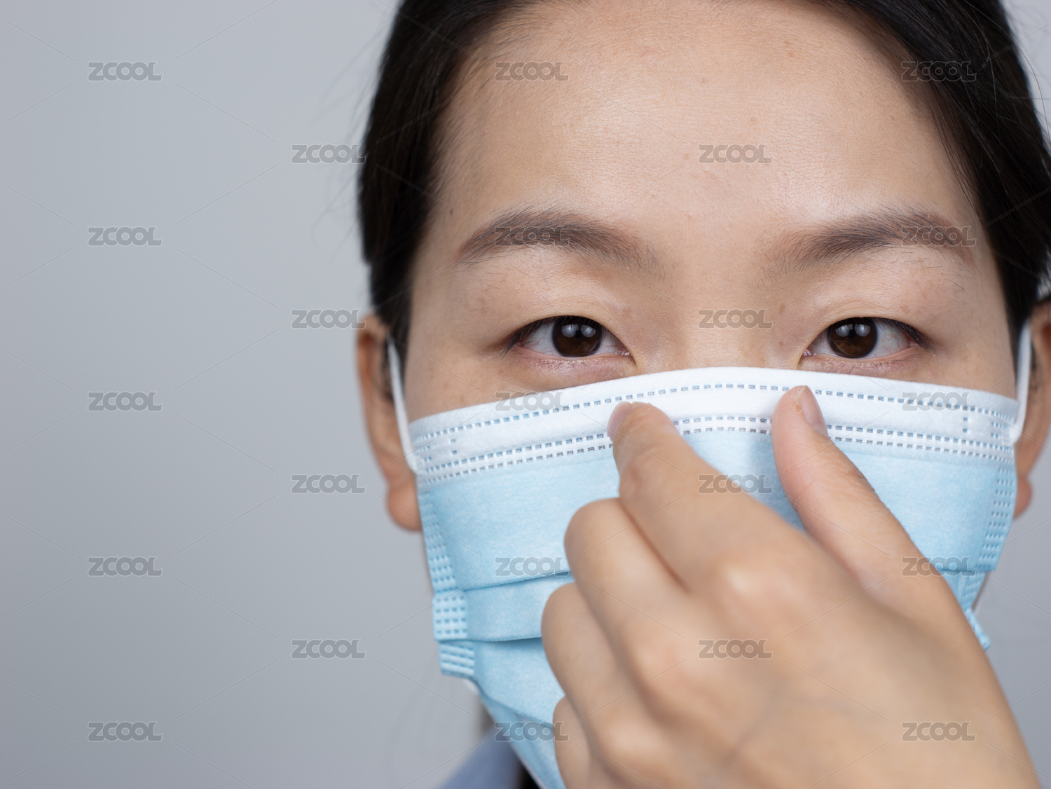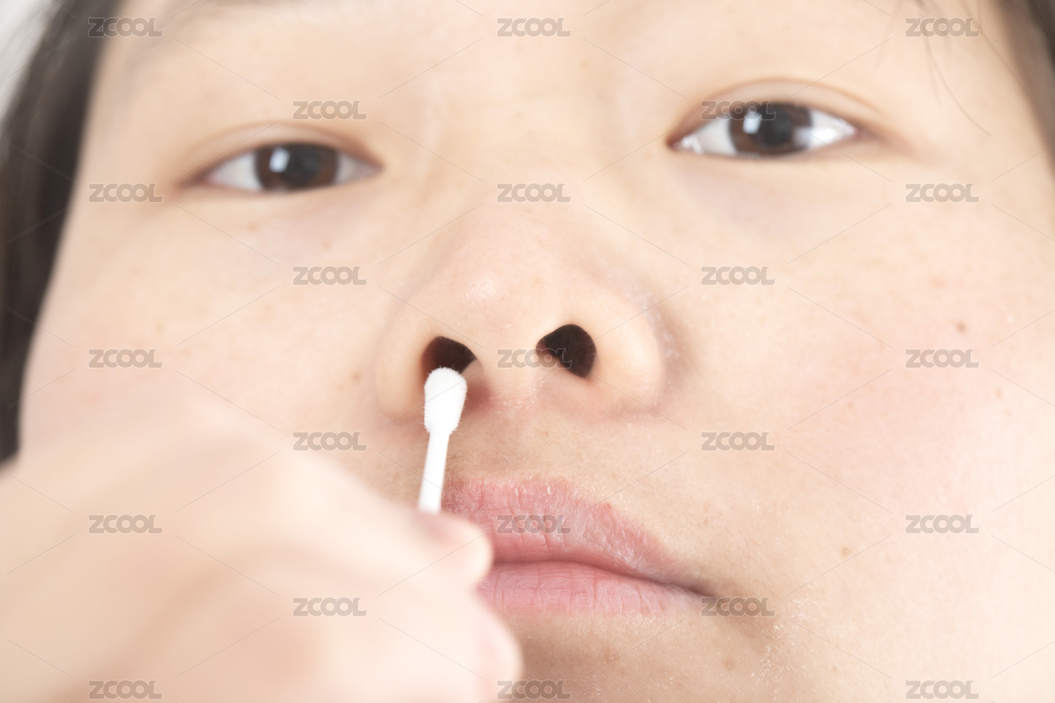 手拿着鼻咽采样拭子对着鼻子采样的女性