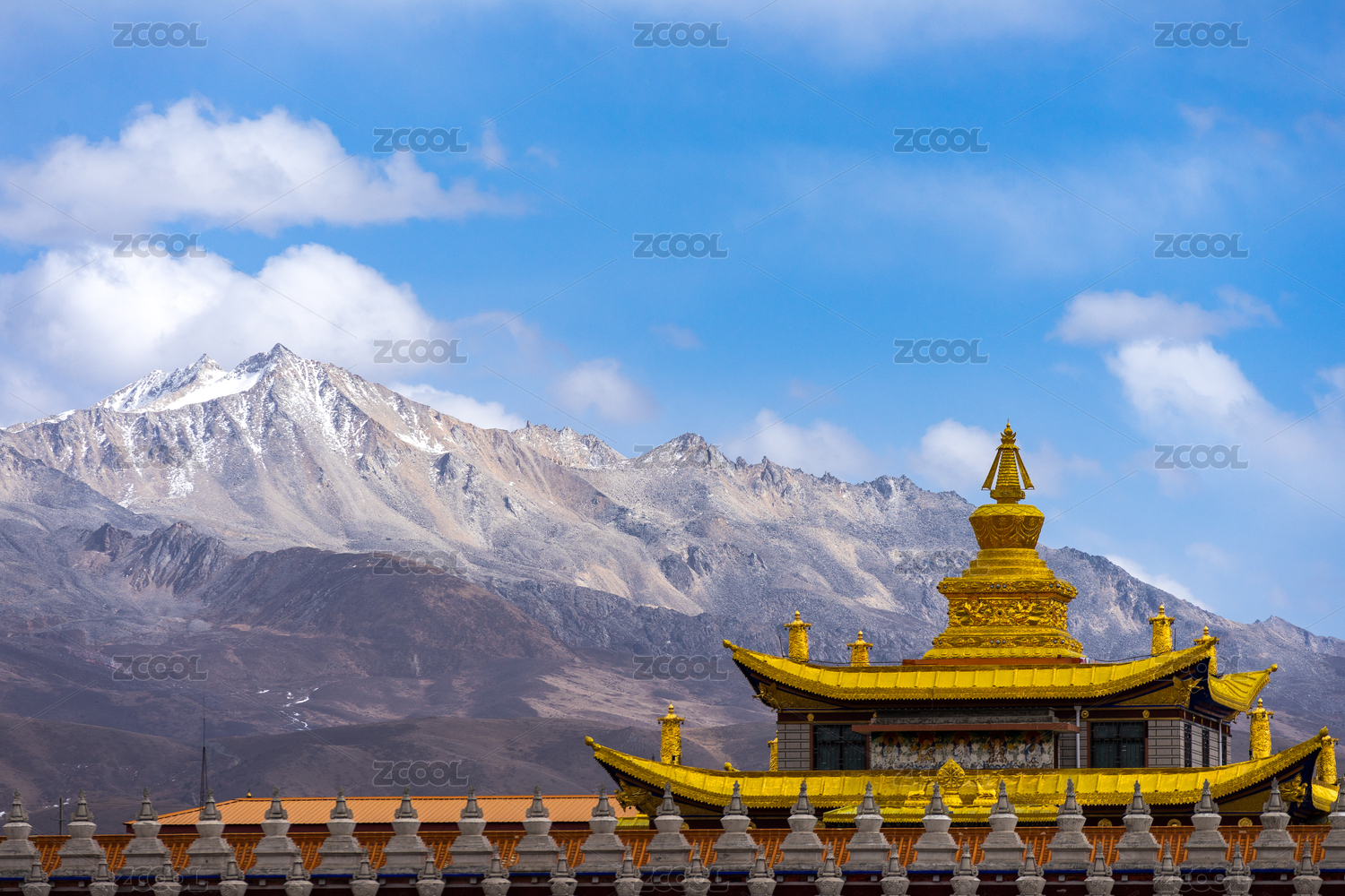 中国四川甘孜藏族自治州塔公寺和雅姆雪山