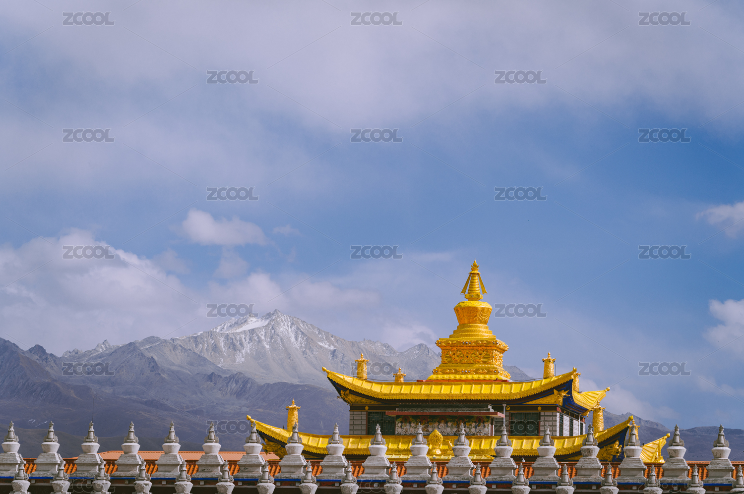 四川甘孜康定县塔公寺雅拉雪山自然建筑风光