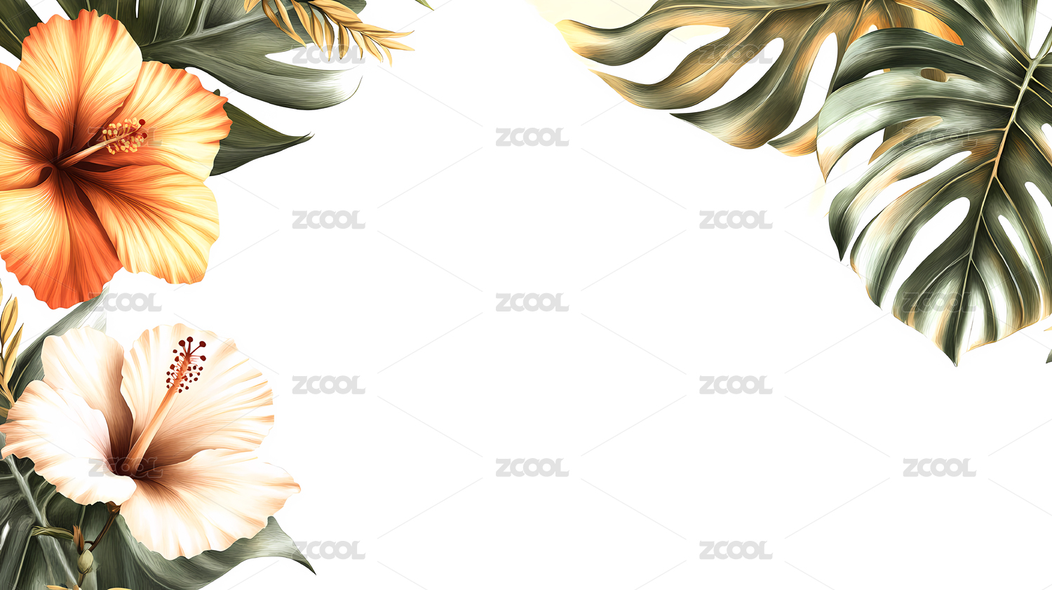 数码复古水彩夏威夷热带花卉装饰抽象海报背