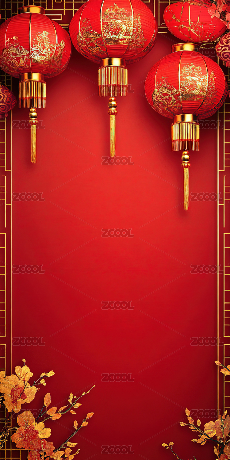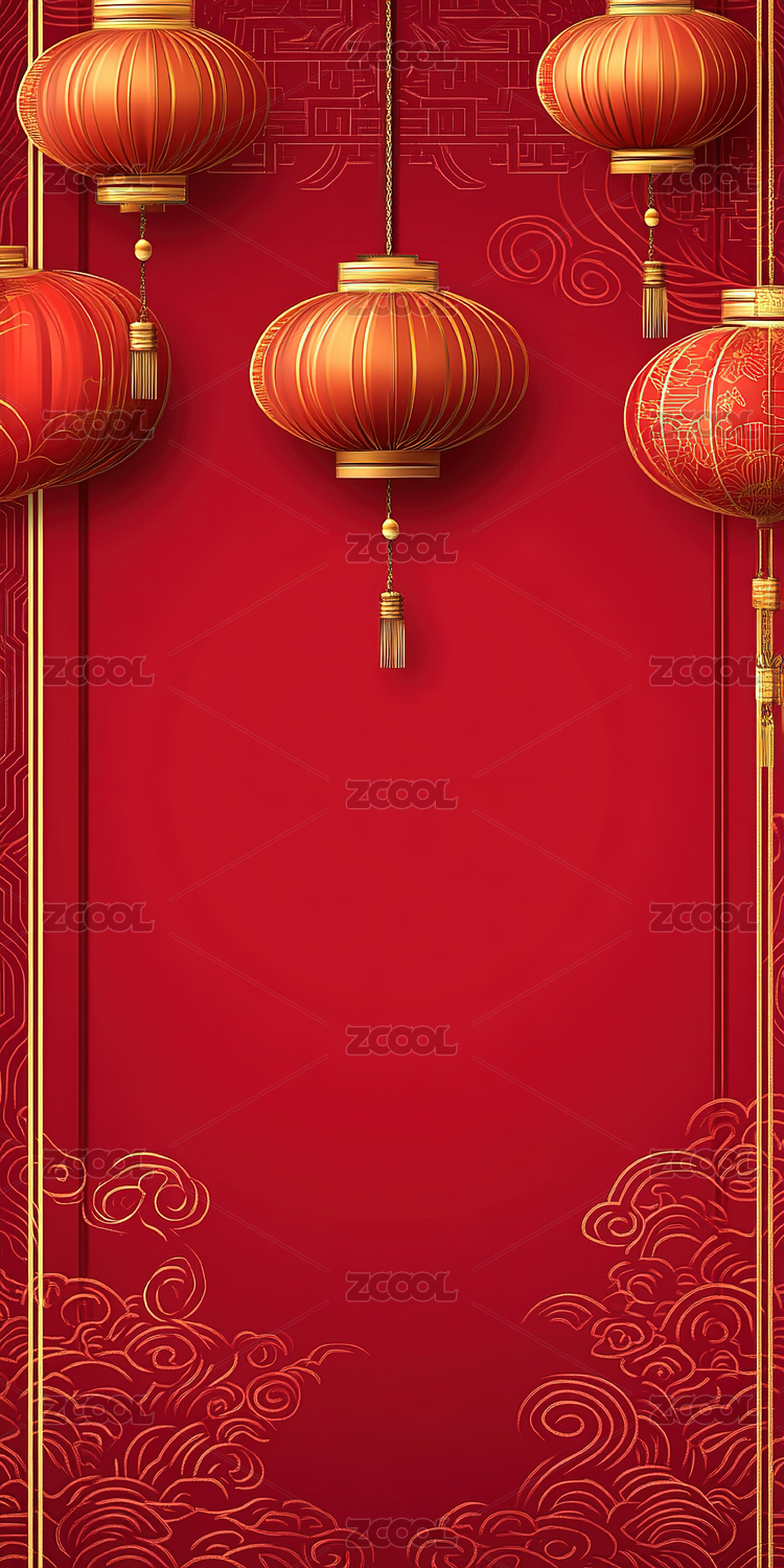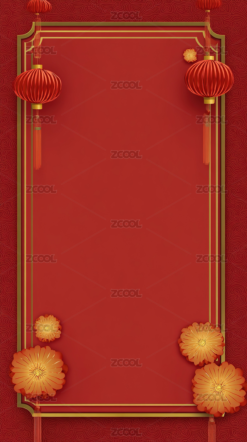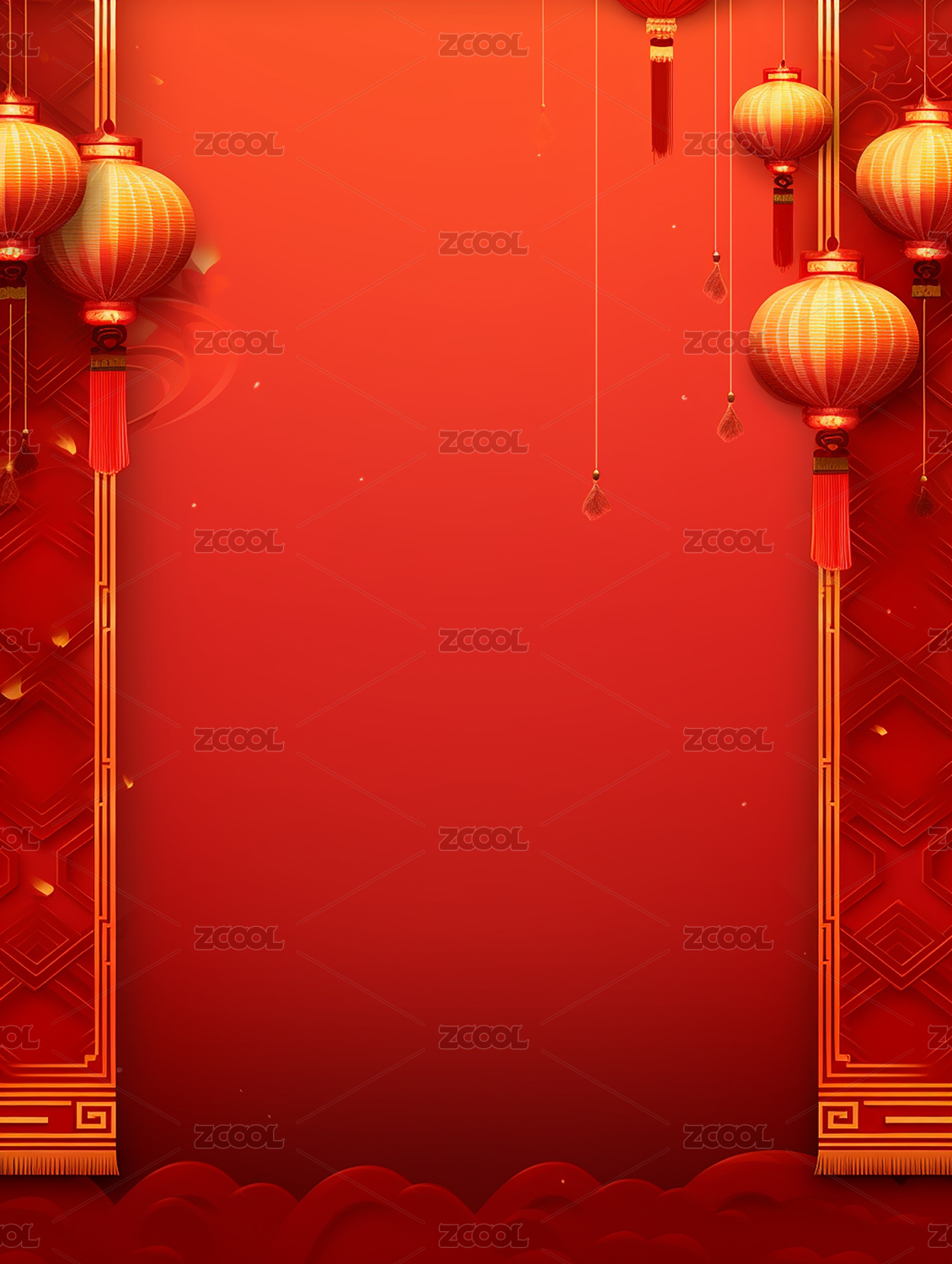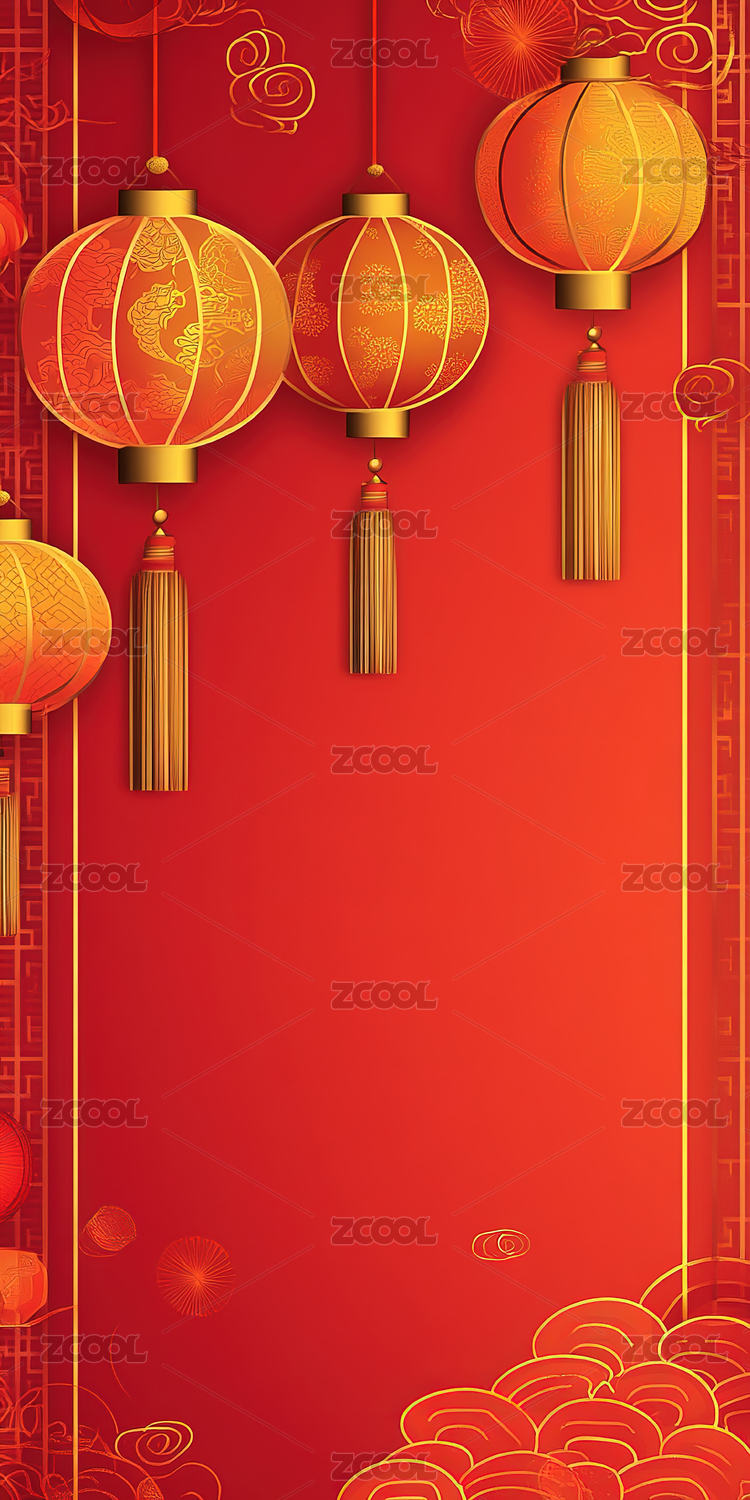 竖版喜庆新年国潮手写书法拜年祝福春联插画