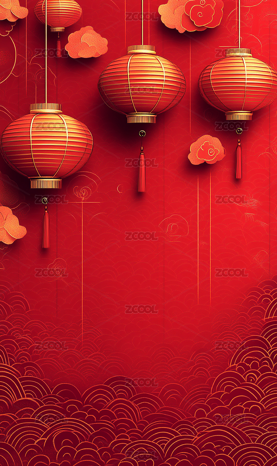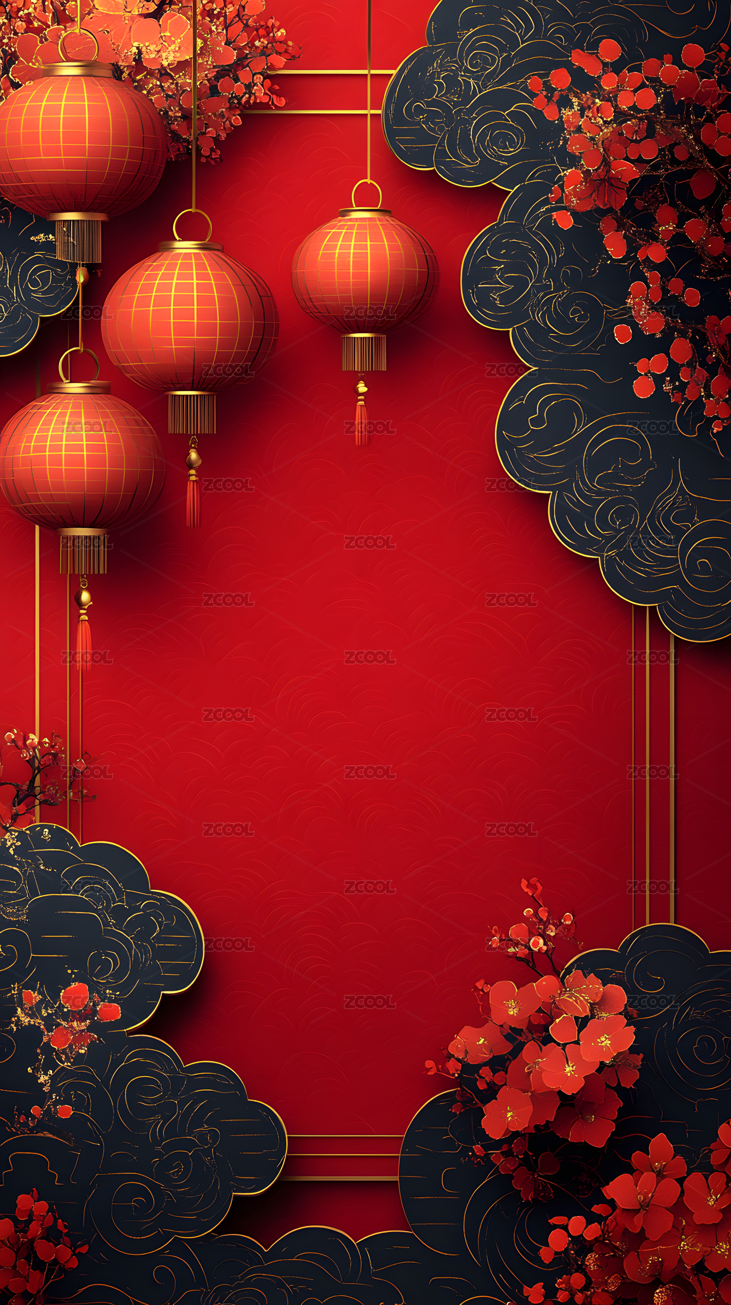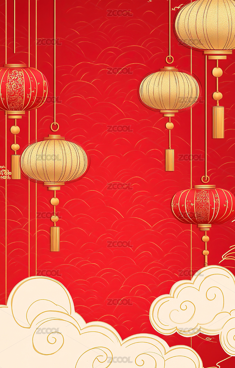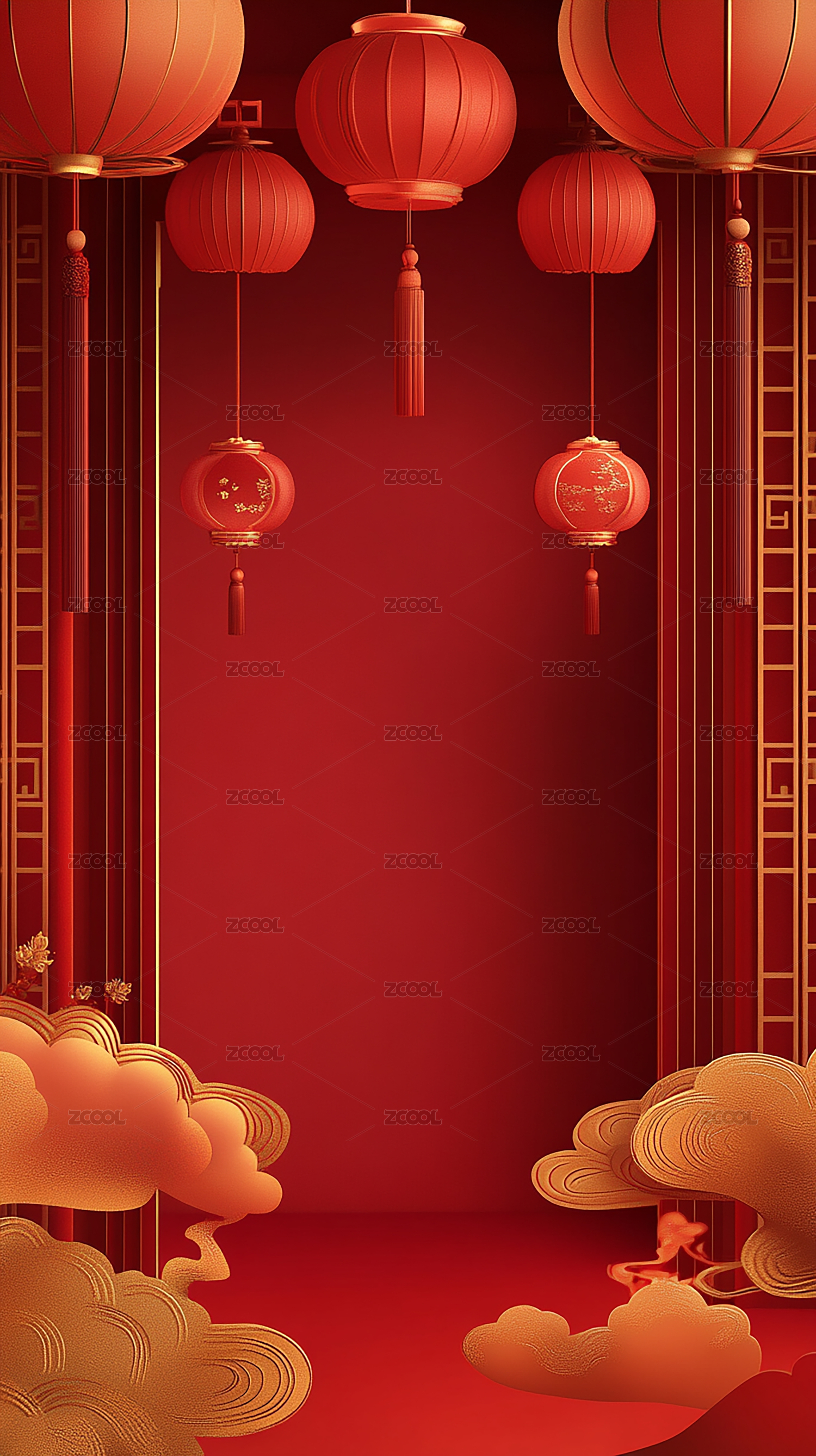 竖版喜庆新年国潮手写书法拜年祝福春联插画