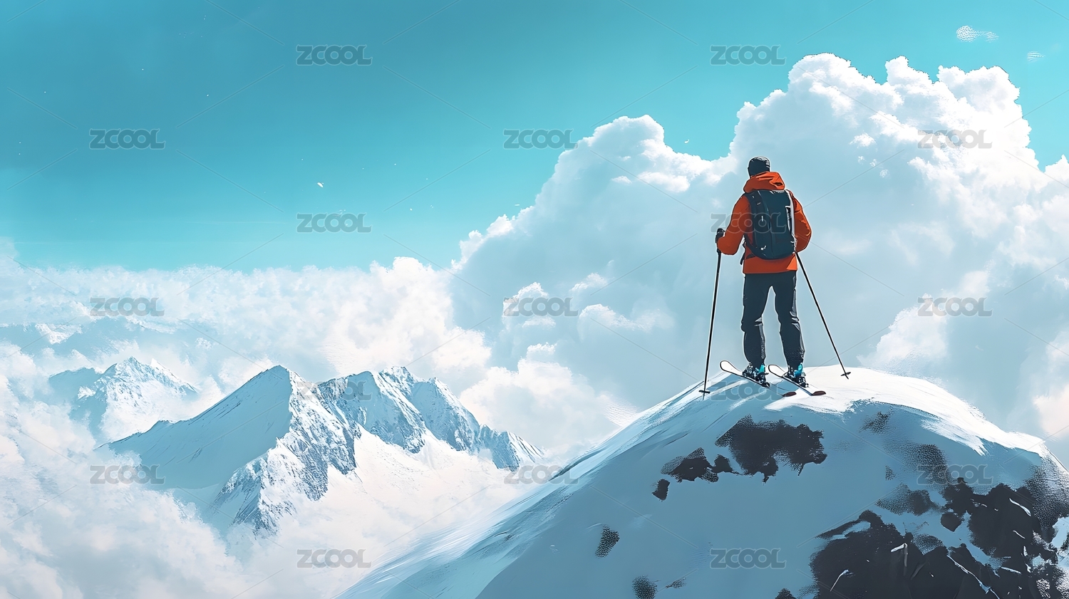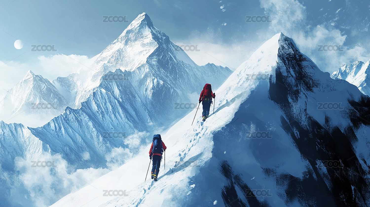 雪山,山顶,特写,3D,写实,蓝天,登山