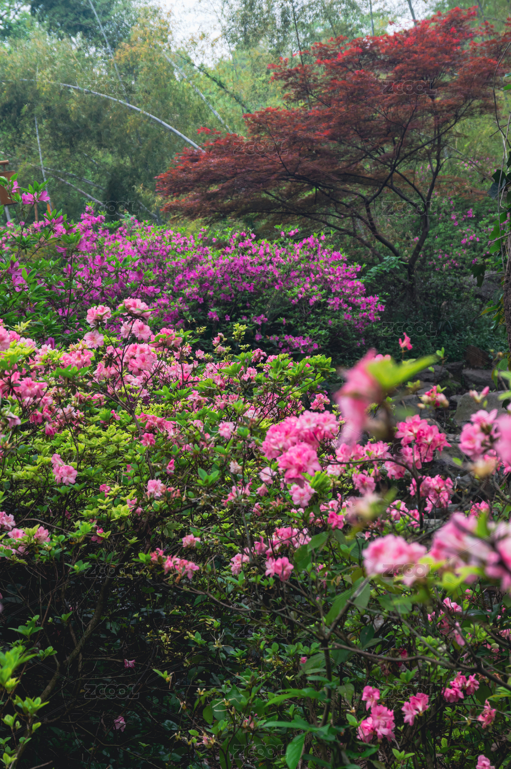 中国四川彭州姚家沟樱花谷樱花路径风景
