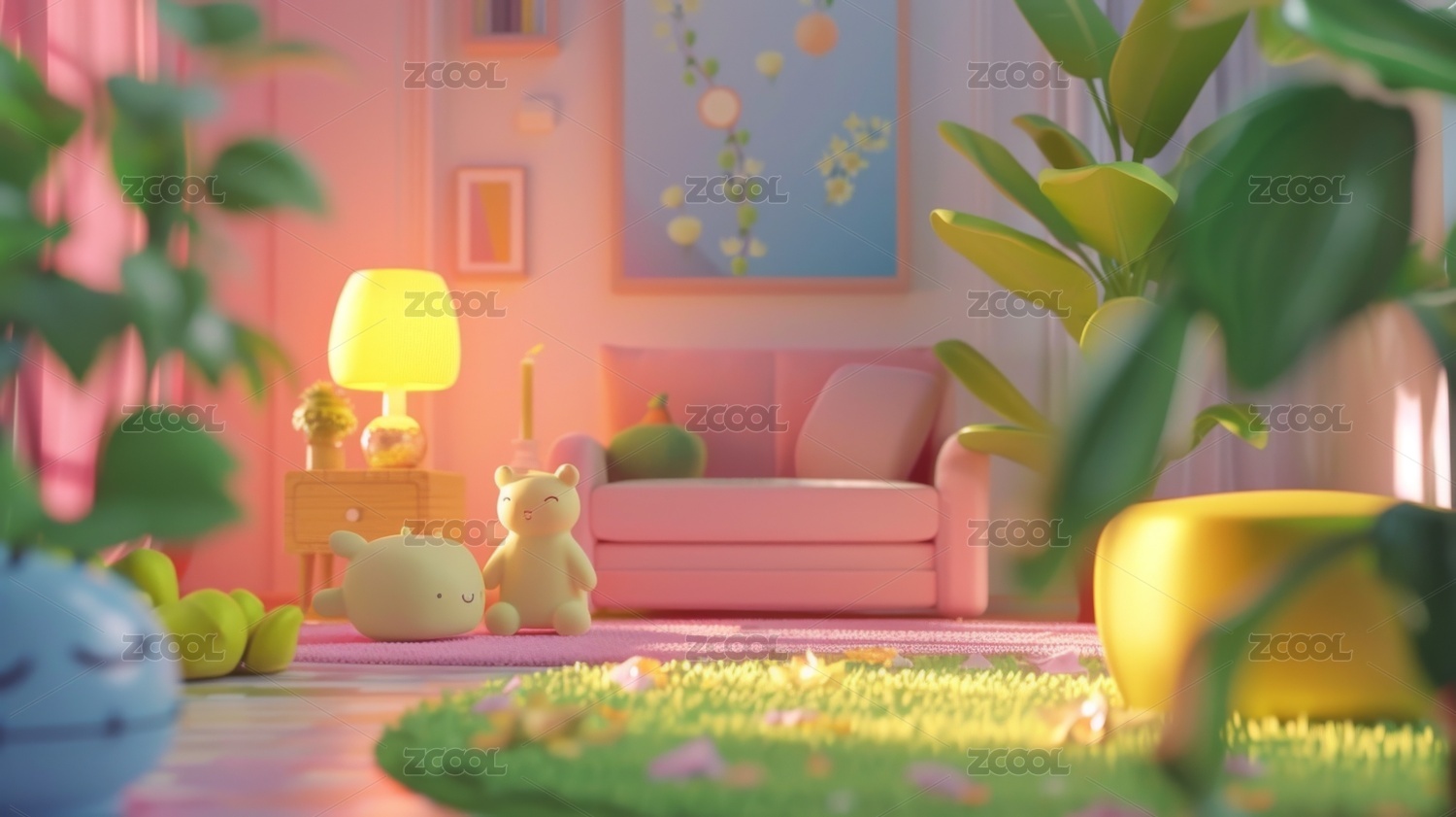 小熊,玩偶,兔子,落地窗,地毯,马卡龙,可爱,温馨,儿童房,玩具
