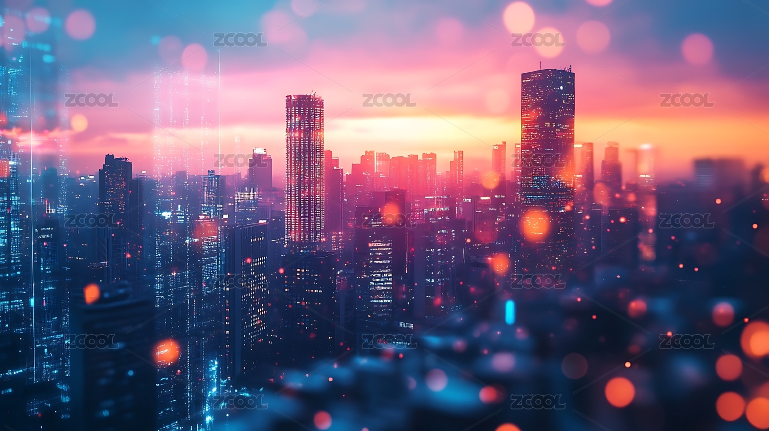 夜景, 灯光, 建筑, 都市,城市, 摩天大楼, 城市景观, 繁华, 光晕, 黄昏