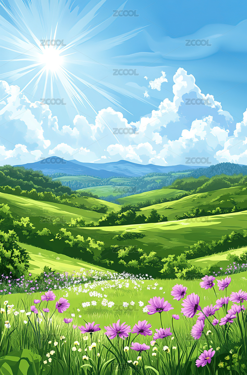 花, 美丽, 自然,雏菊, 夏季, 蓝天, 白云, 草地, 风景, 户外