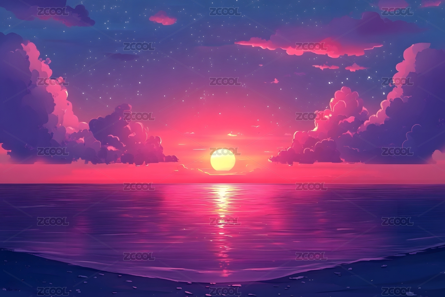 艺术, 紫色, 光线, 天空, 绘画, 宁静, 水彩, 云彩, 粉色, 夕阳