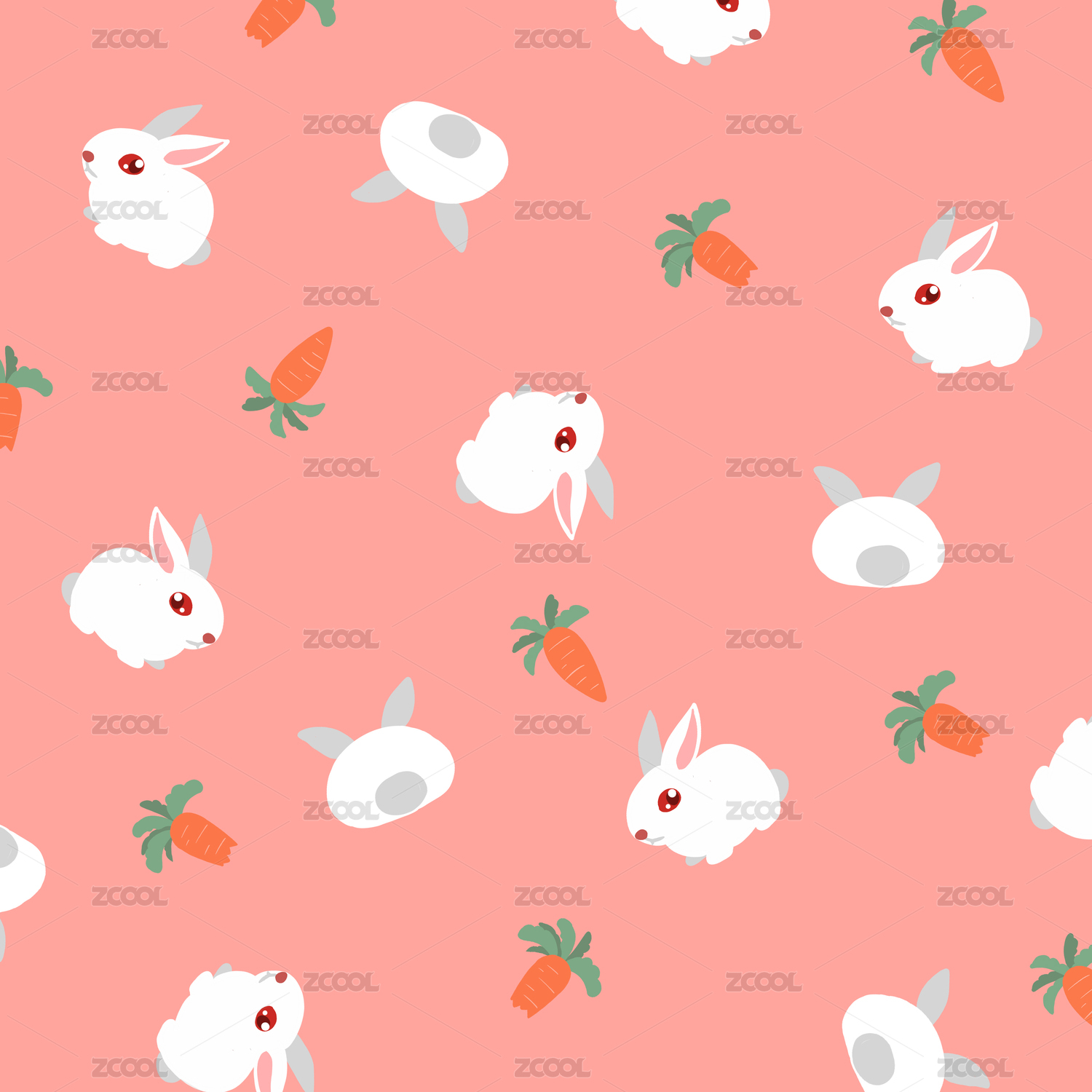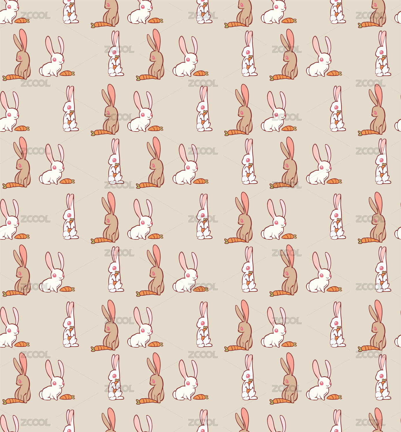 小兔子和胡萝卜背景印花