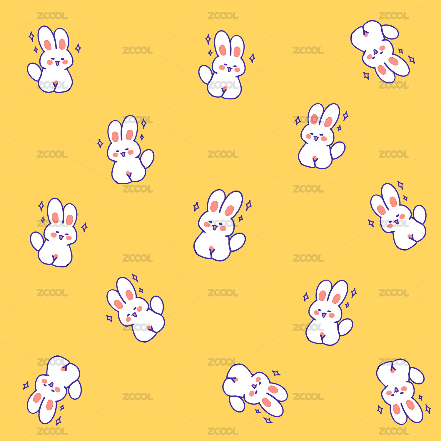 可爱萌系兔子无缝插画
