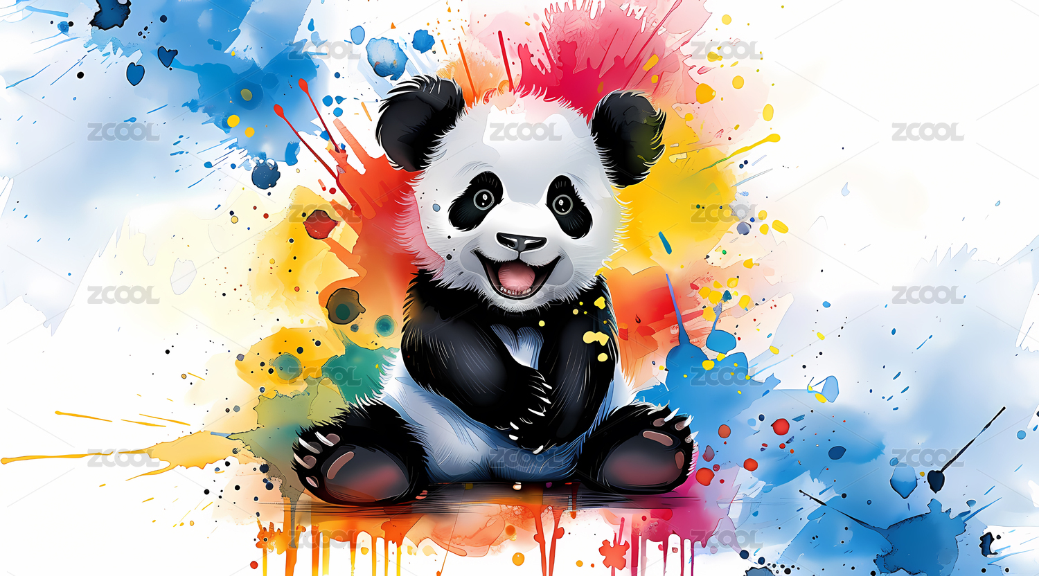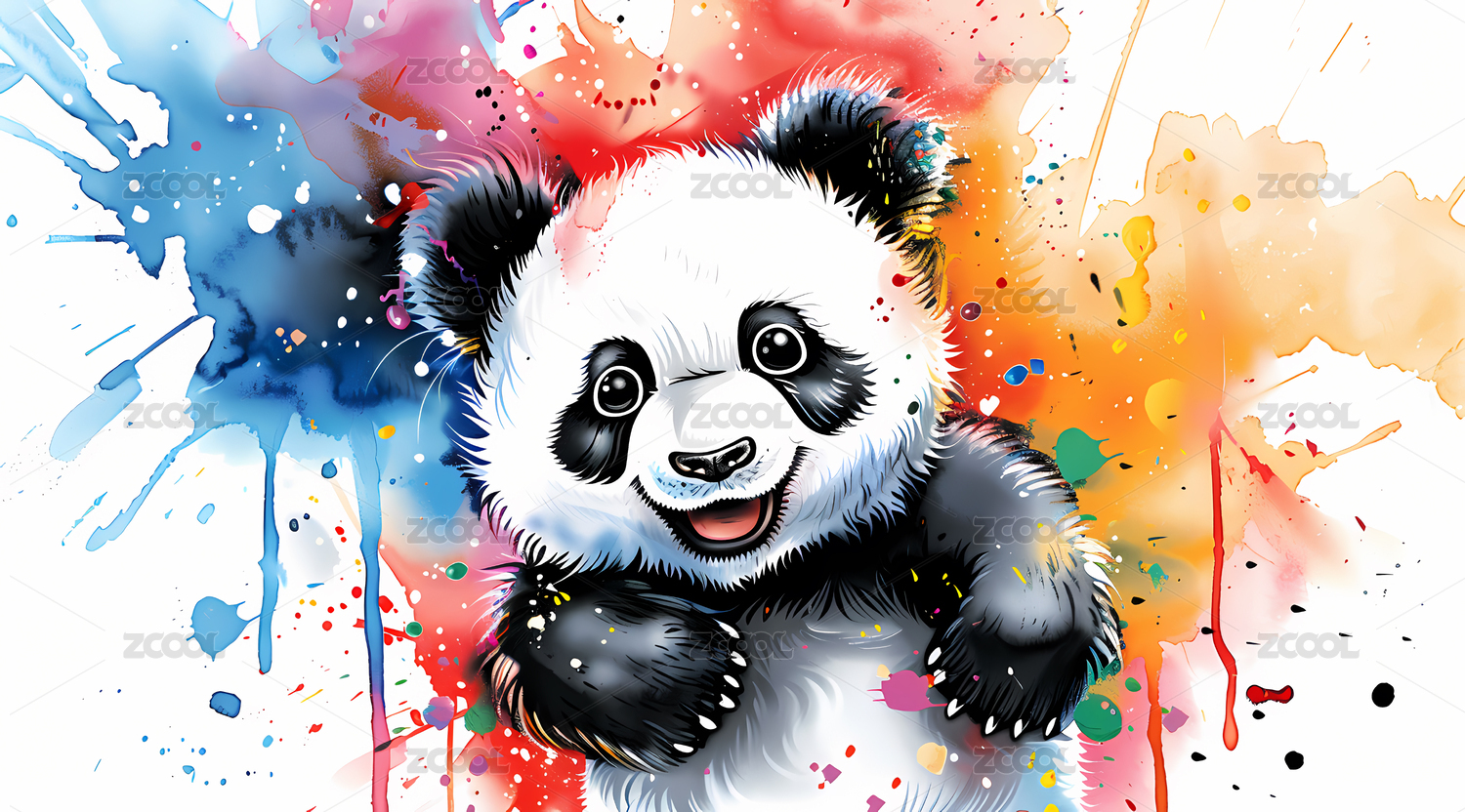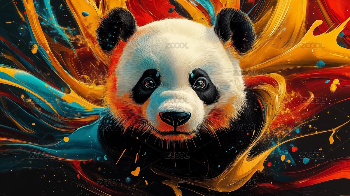 唯美,艺术感,金属,液态,场景,熊猫,插画,背景,图片,动感