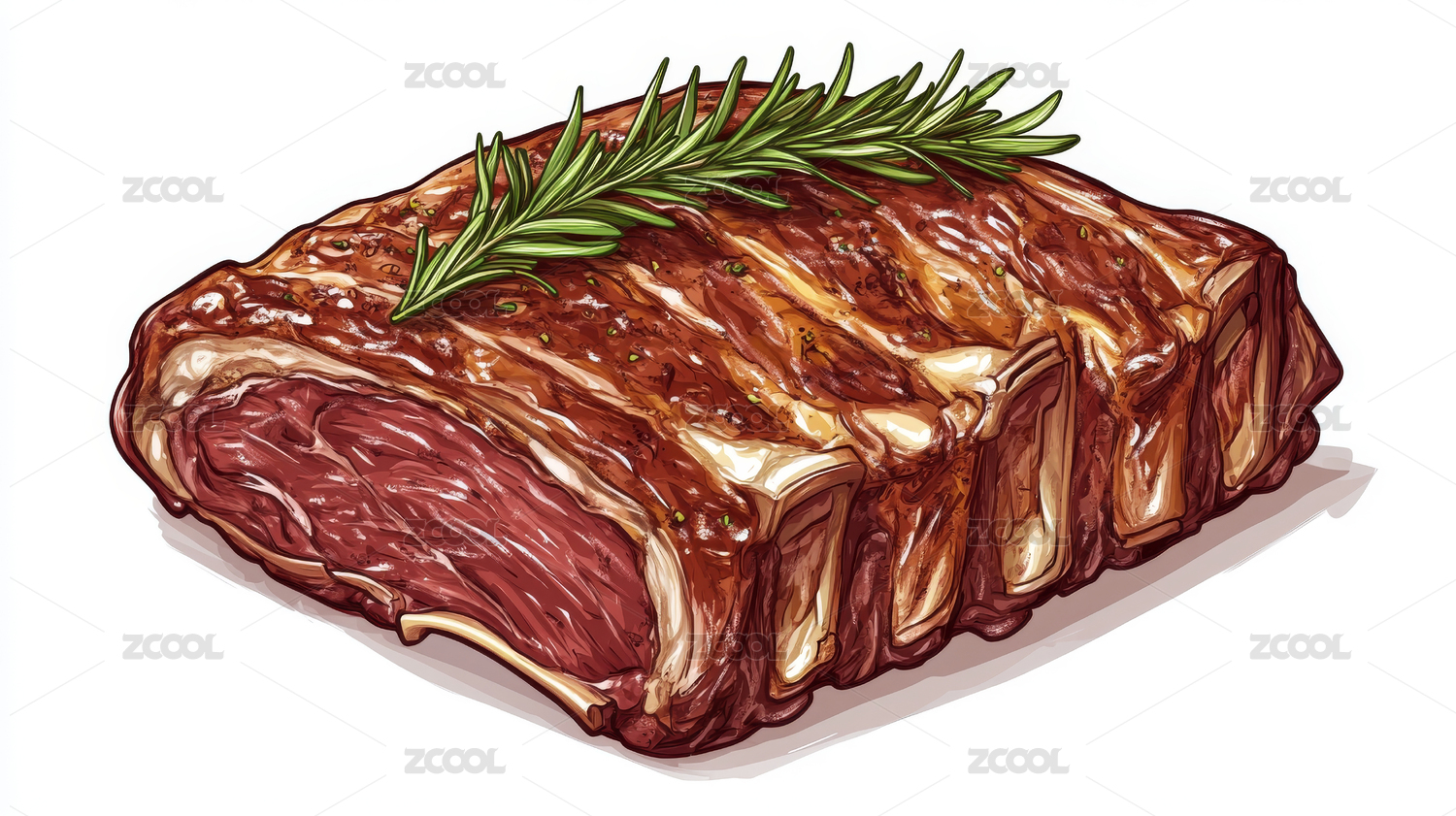 手绘,卡通,牛肉,肉,插画,牛排,食物,营养,蛋白质