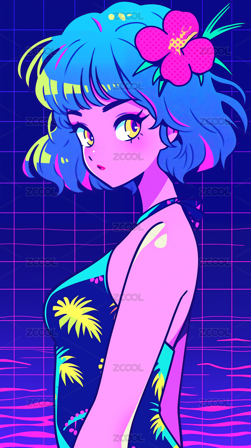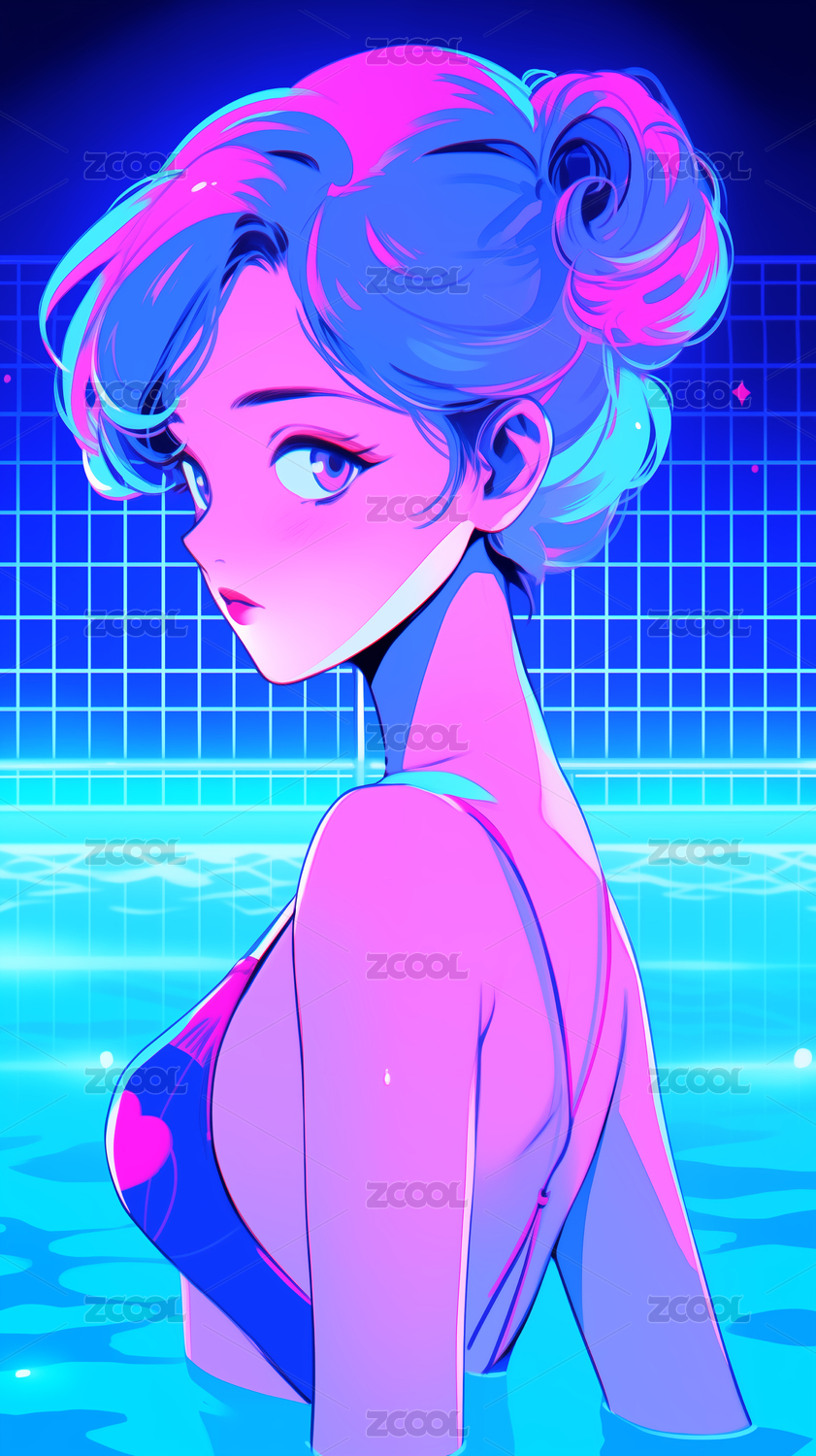 卡通,插画,漂亮,可爱,夏日,泳衣,女孩,女人,美丽,游泳