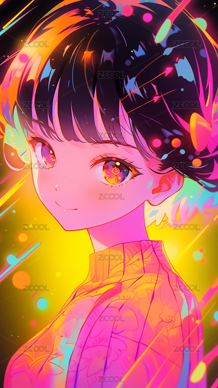 复古日漫卡通人物大眼睛漂亮女孩半身头像