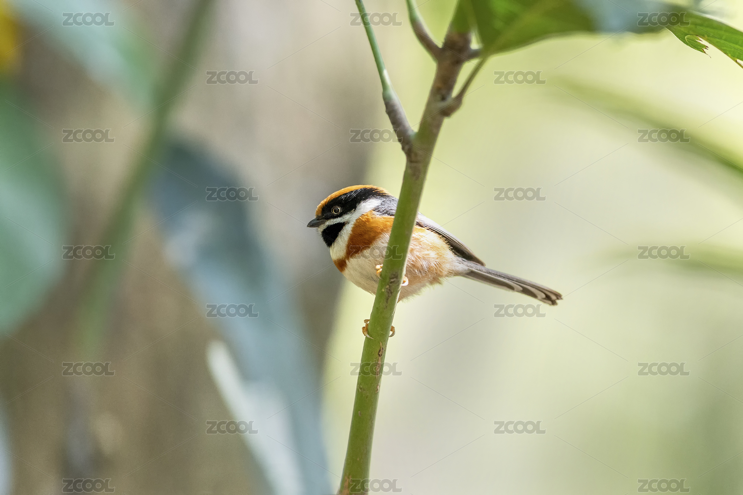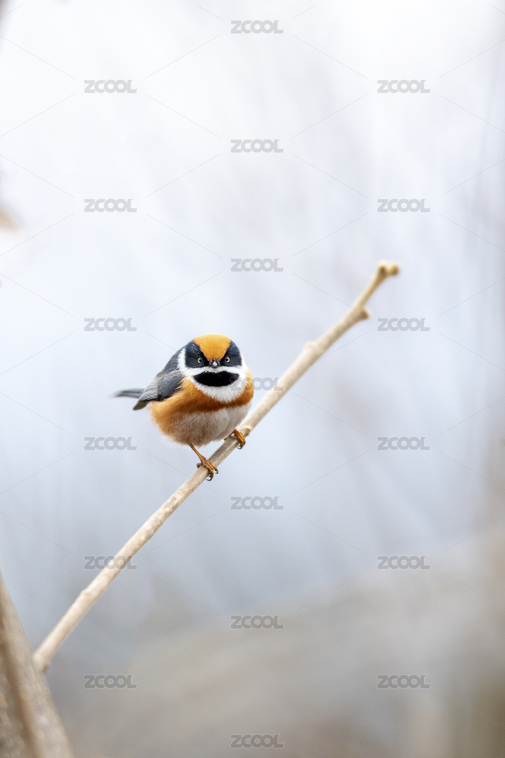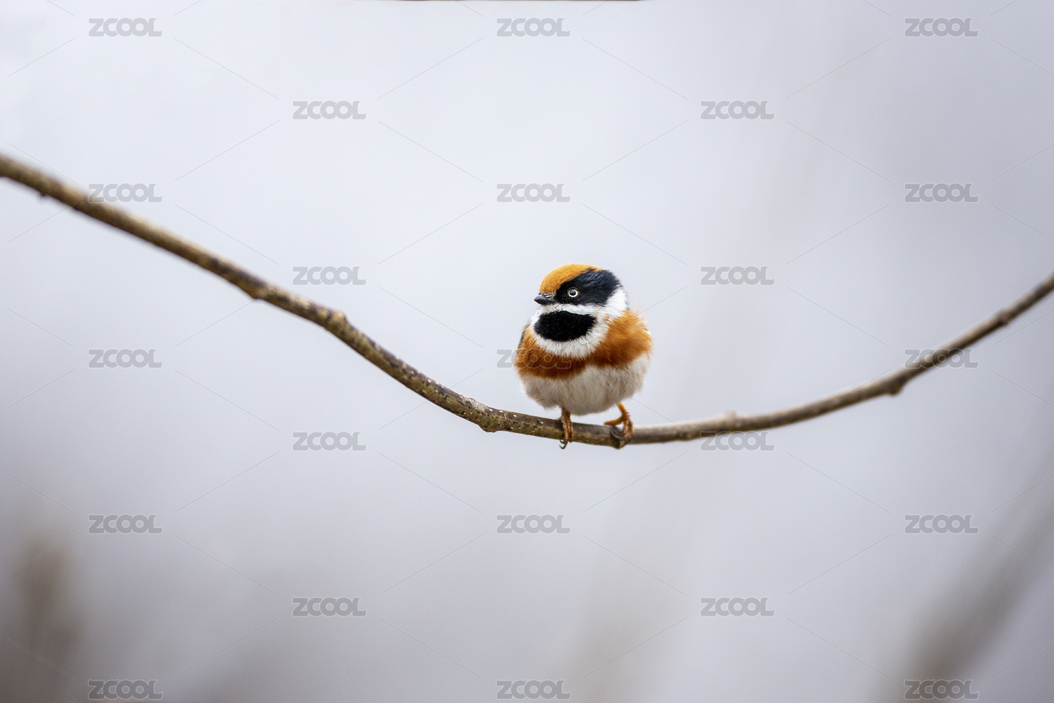 独自在林子里活动及觅食的红头长尾山雀鸟