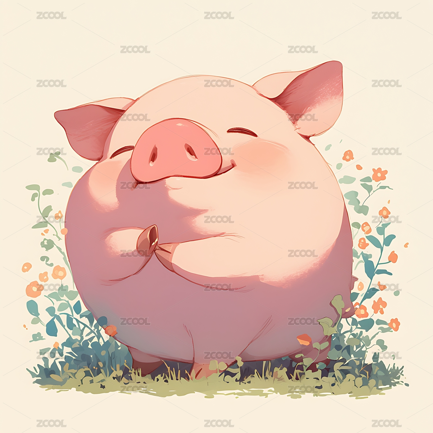 开心喜悦欢快卡通可爱萌Q版猪扁平插画
