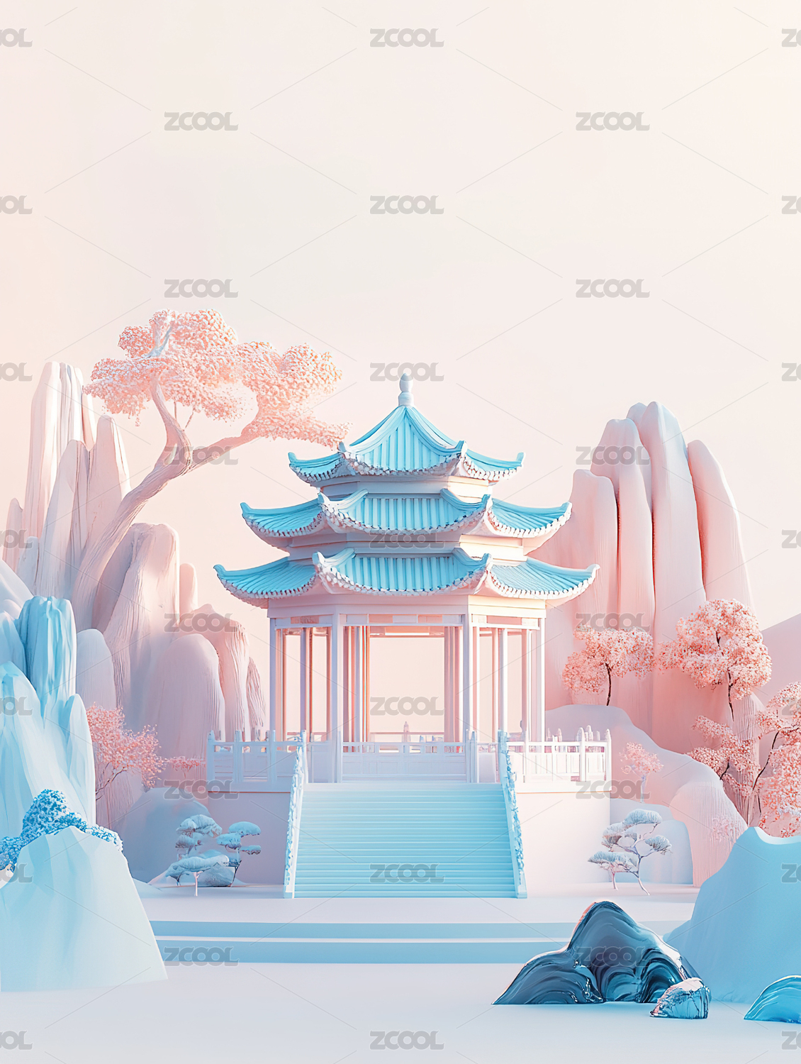 粉色系中国风3D场景
