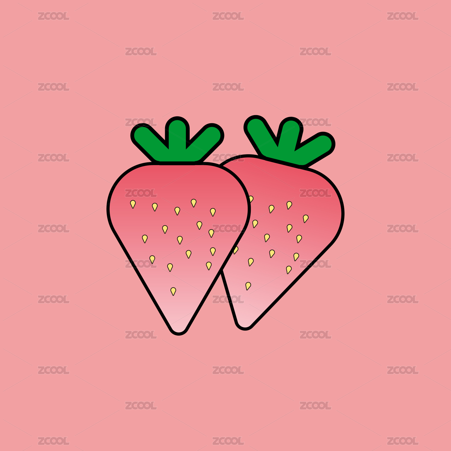 草莓清新扁平甜美插画