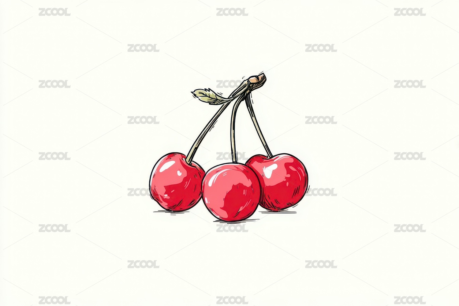 三颗鲜红樱桃的精致手绘插画