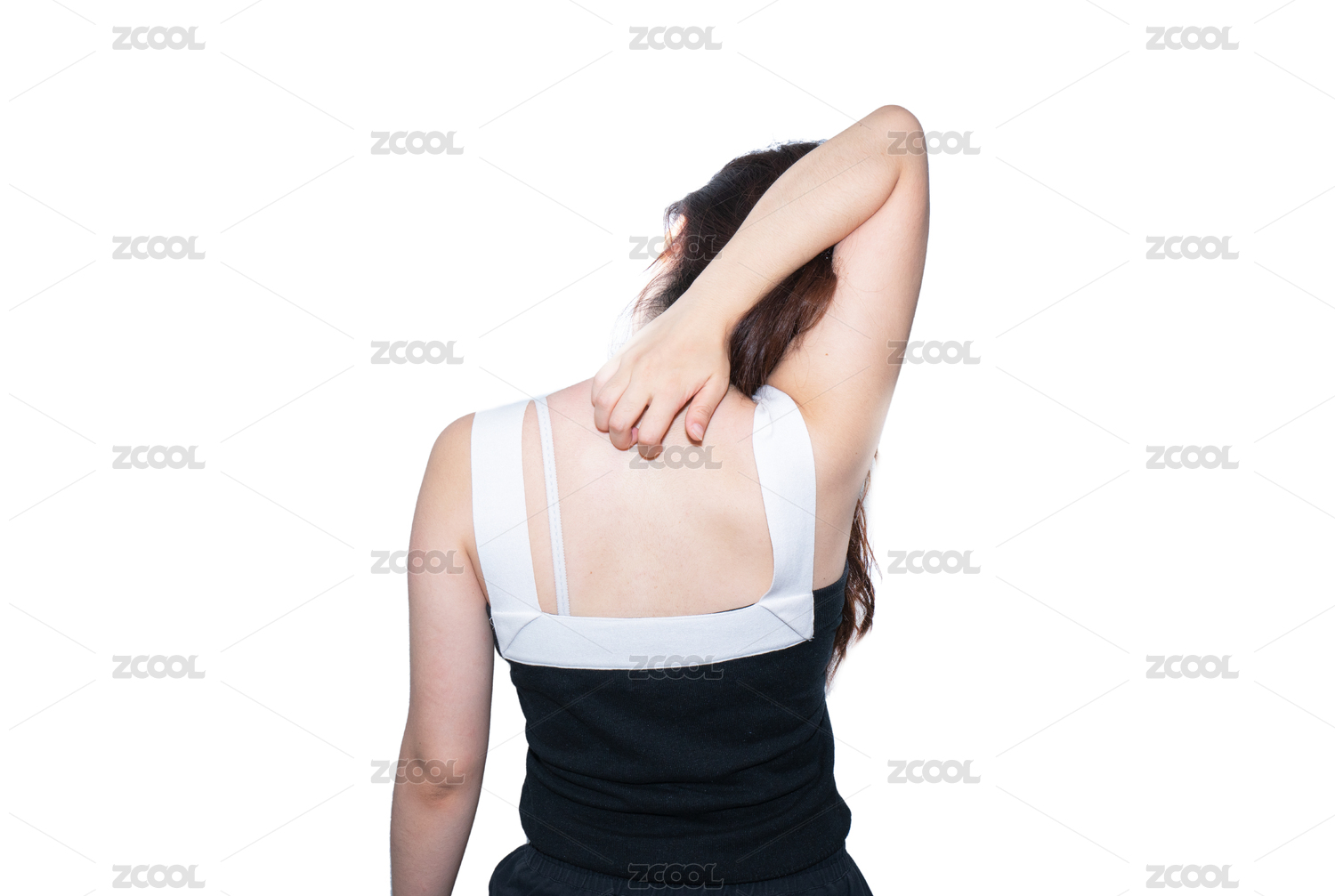 一个亚洲女性揉着自己疼痛酸痛的肩膀