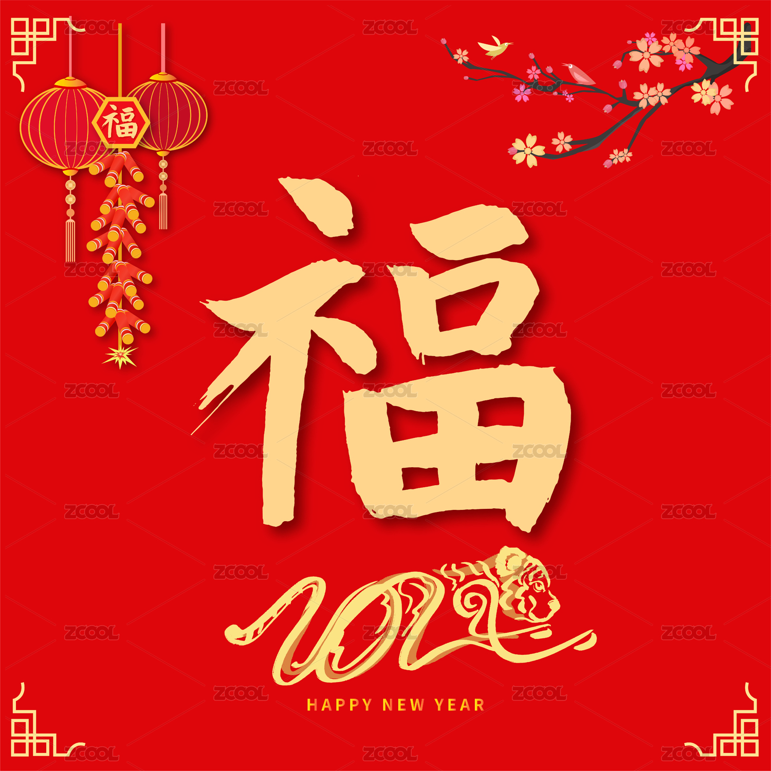 福,书法字体,中国传统新春佳节,新春快乐,灯笼背景图,