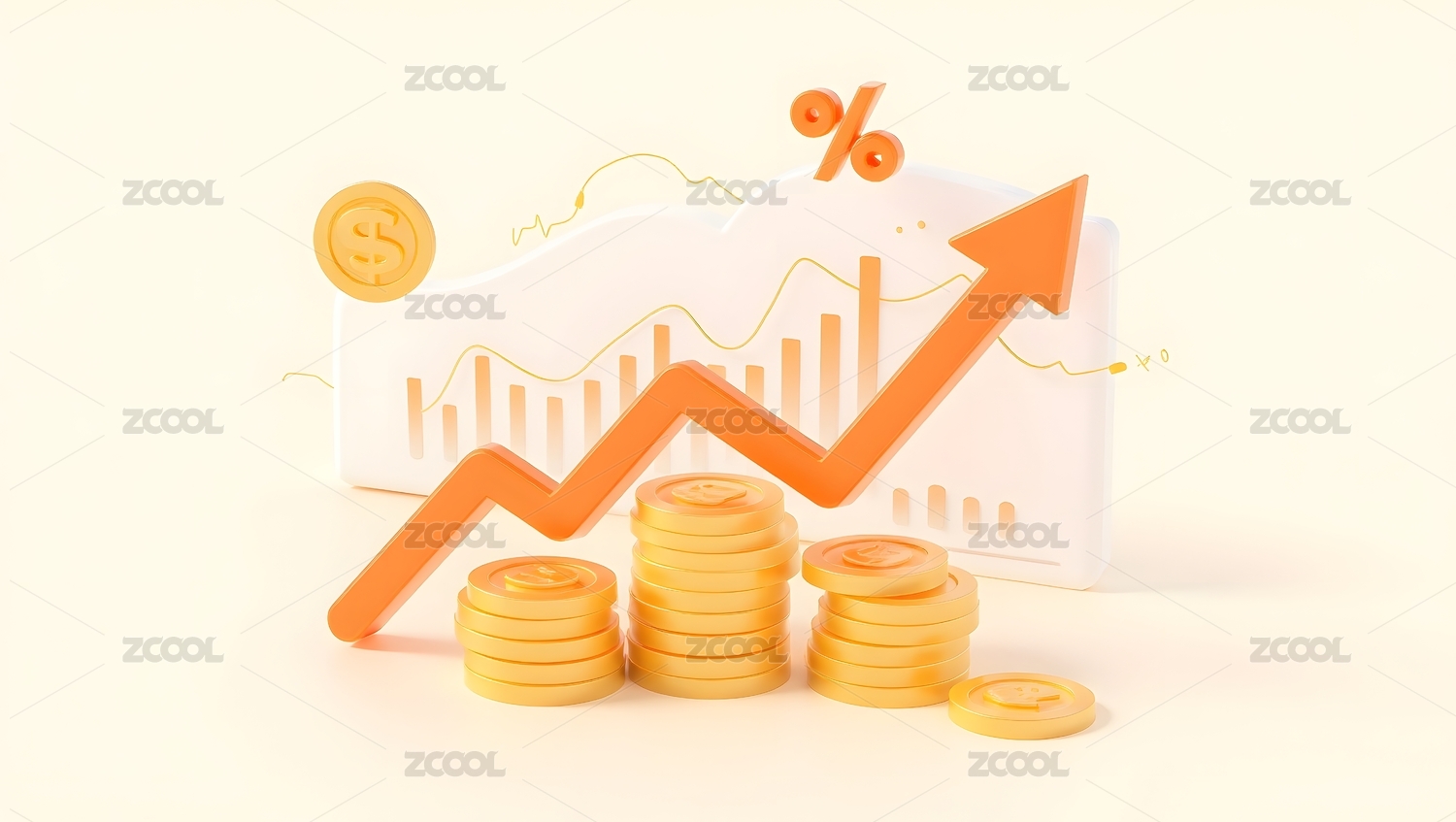 增长箭头与金币符号